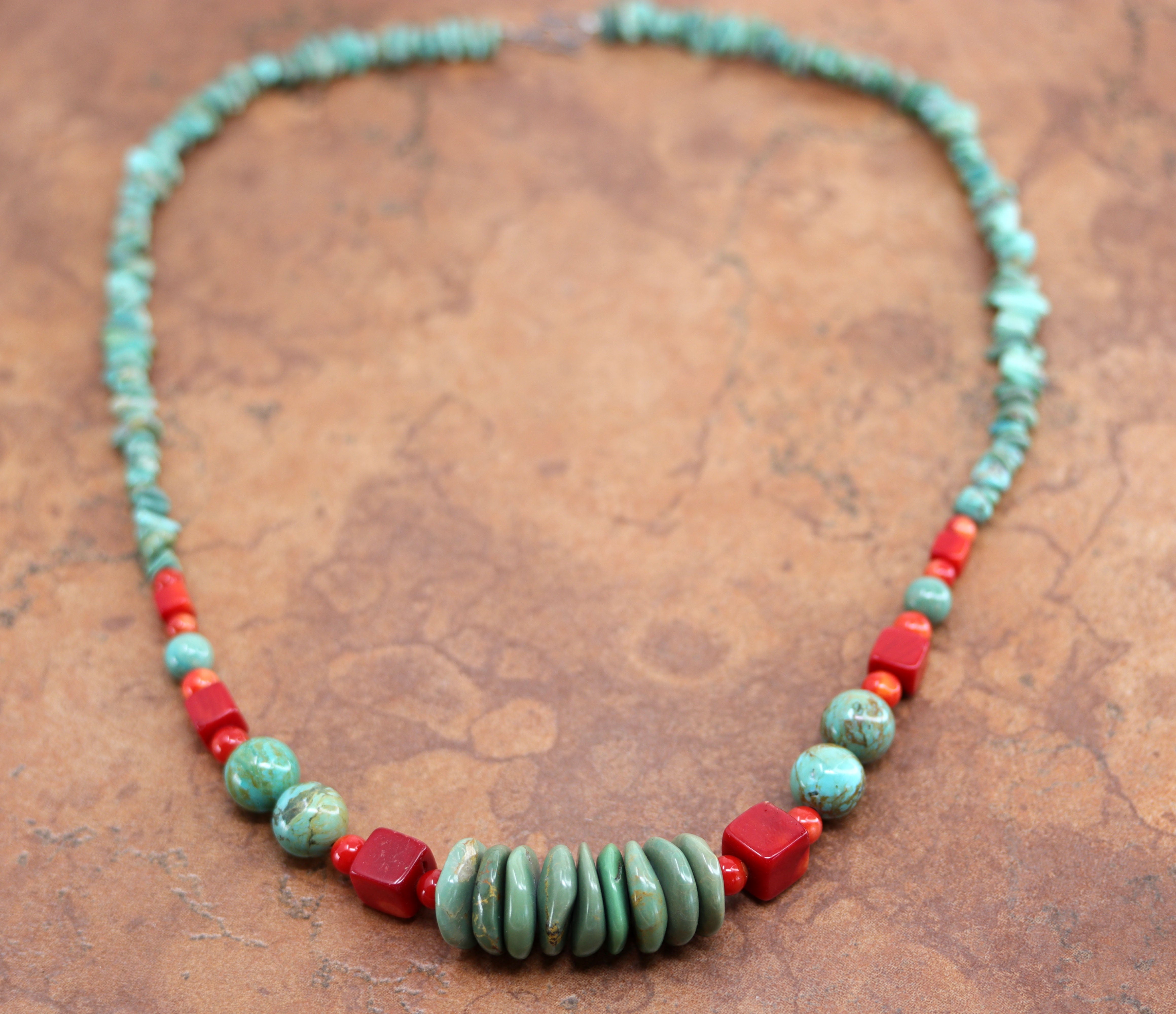 Silver Bamboo Coral Turquoise Beaded Necklace