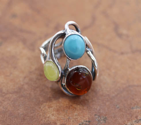 Sterling Baltic Amber Turquoise Ring Size 6-9