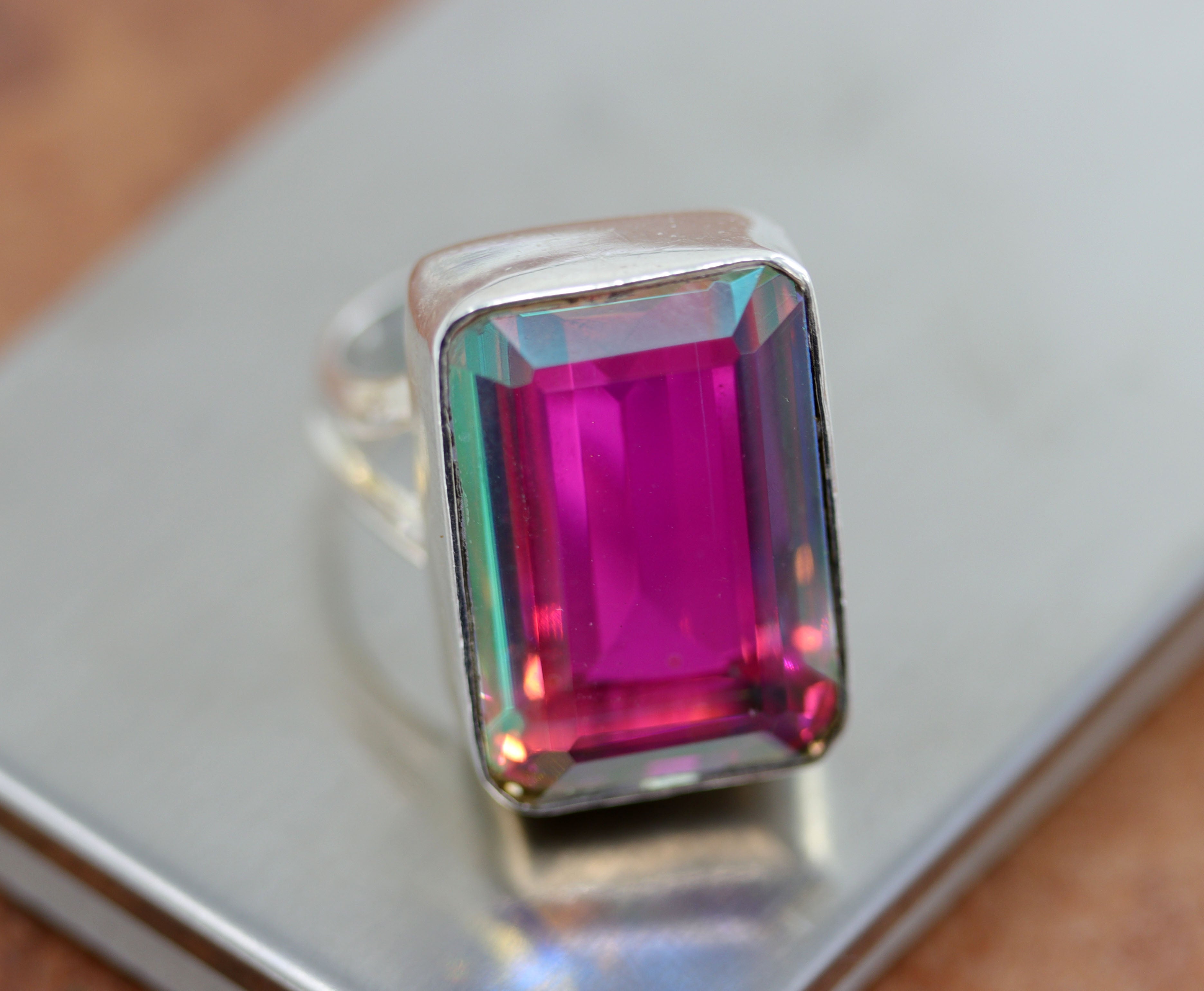 Sterling Silver Angel Aura Quartz Ring Size 8 1/2