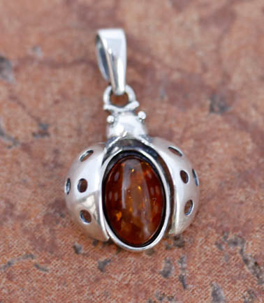 Sterling Silver Baltic Amber Lady Bug Pendant