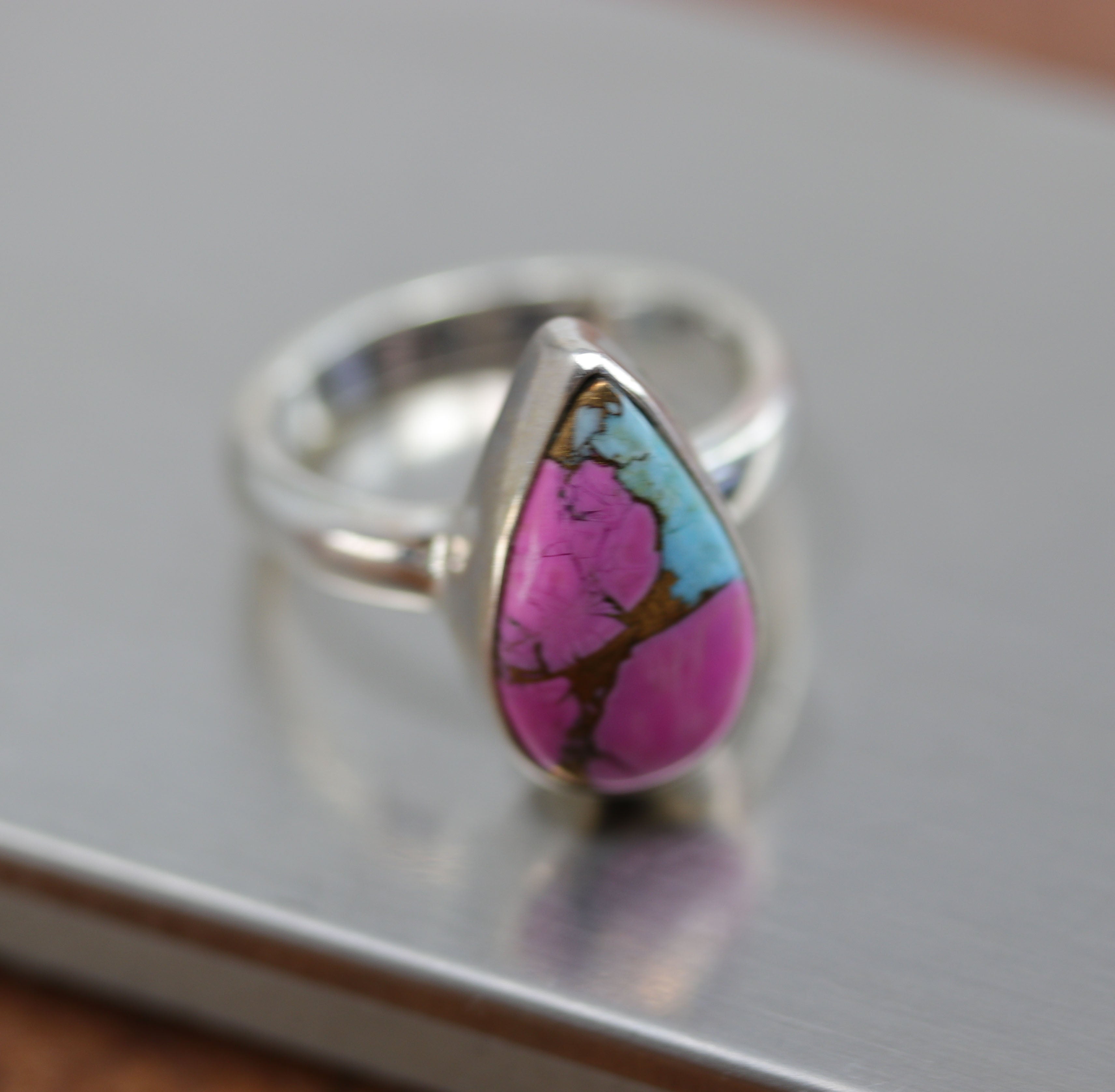 Sterling Silver Cotton Candy Dahlia Turquoise Ring Size 6 1/2