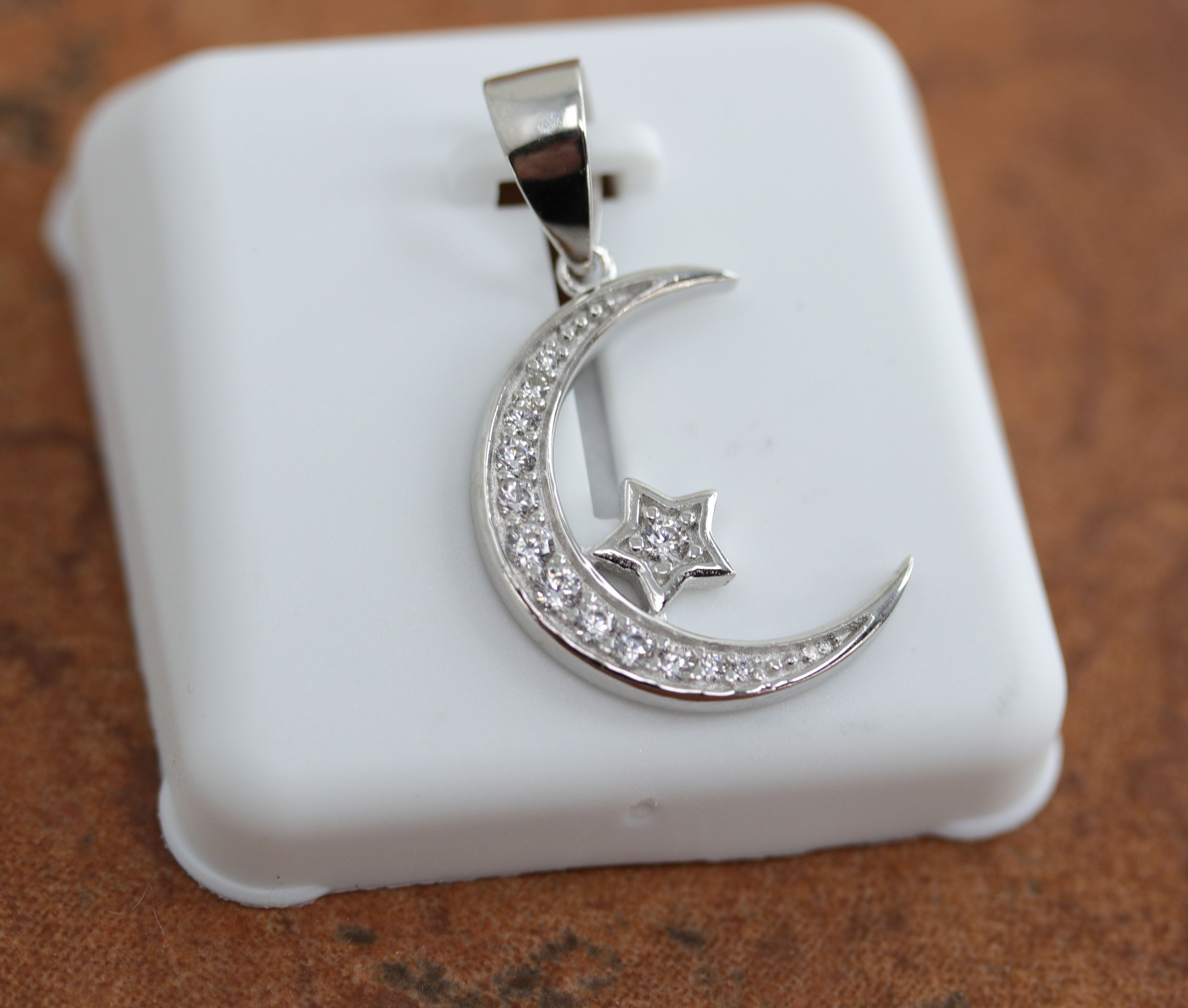 Sterling Silver Cubic Zirconia Moon Star Pendant