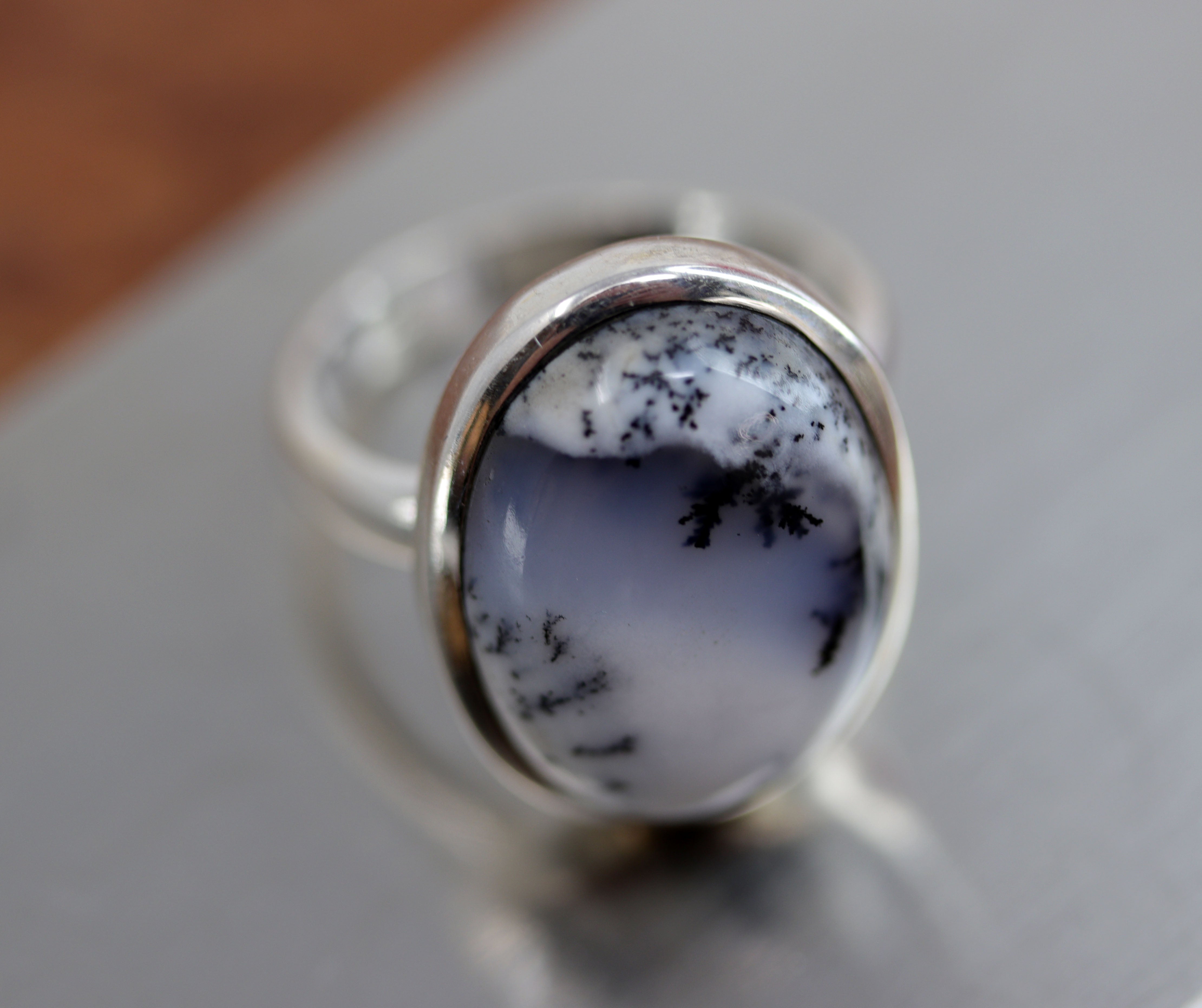 Sterling Silver Dendritic Agate Ring Size 8 1/2