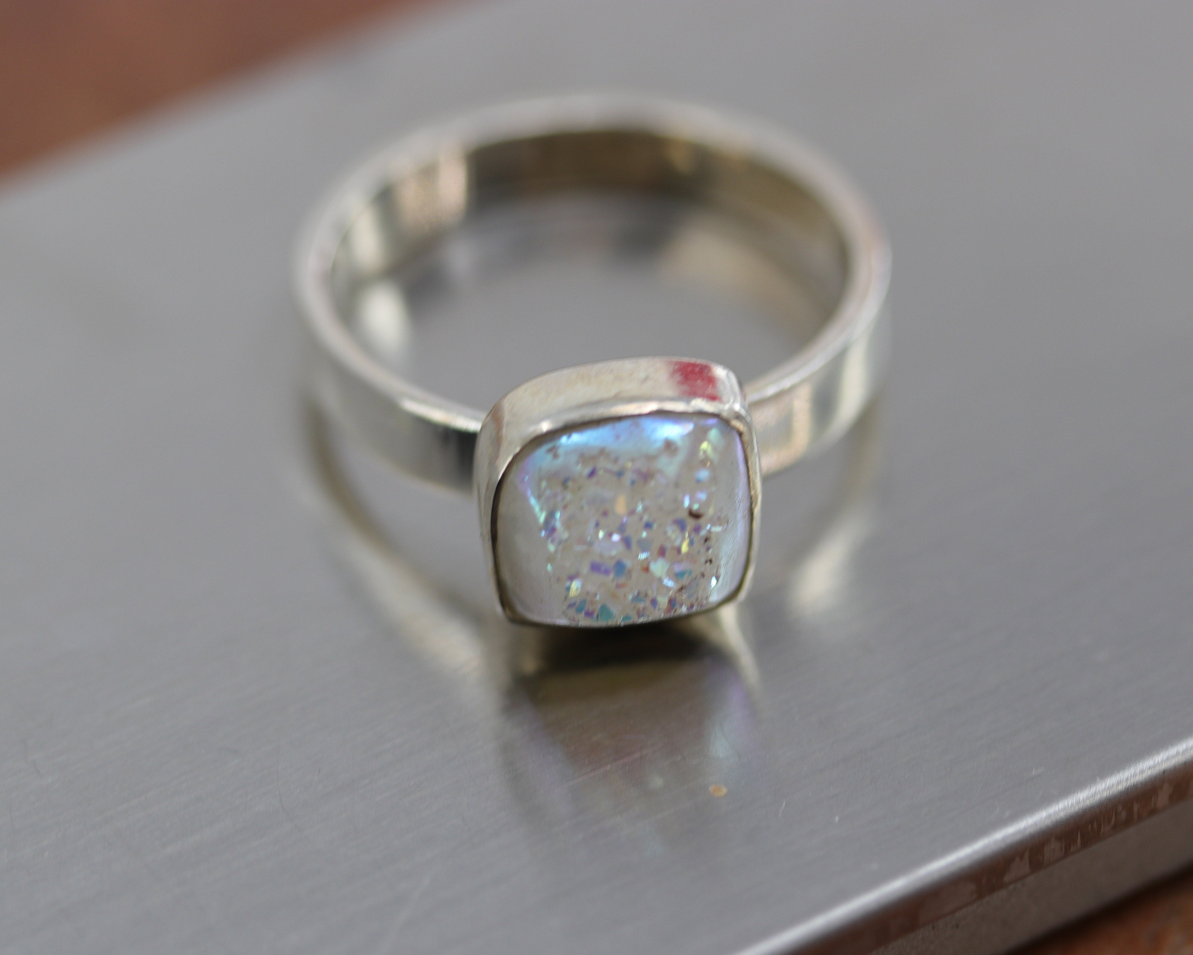 Sterling Silver Druzy Ring Size 8 1/2
