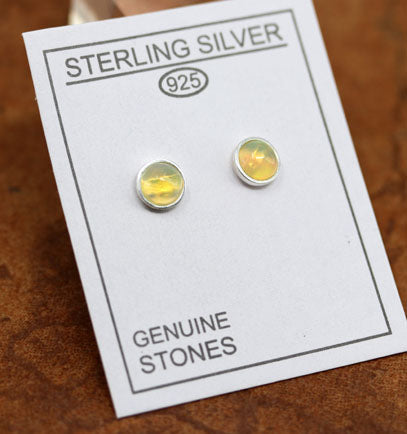 Beautiful gemstone earrings made from sterling silver and genuine Ethiopian opal. The earrings are 5/16" in diameter. This item is not Native American.