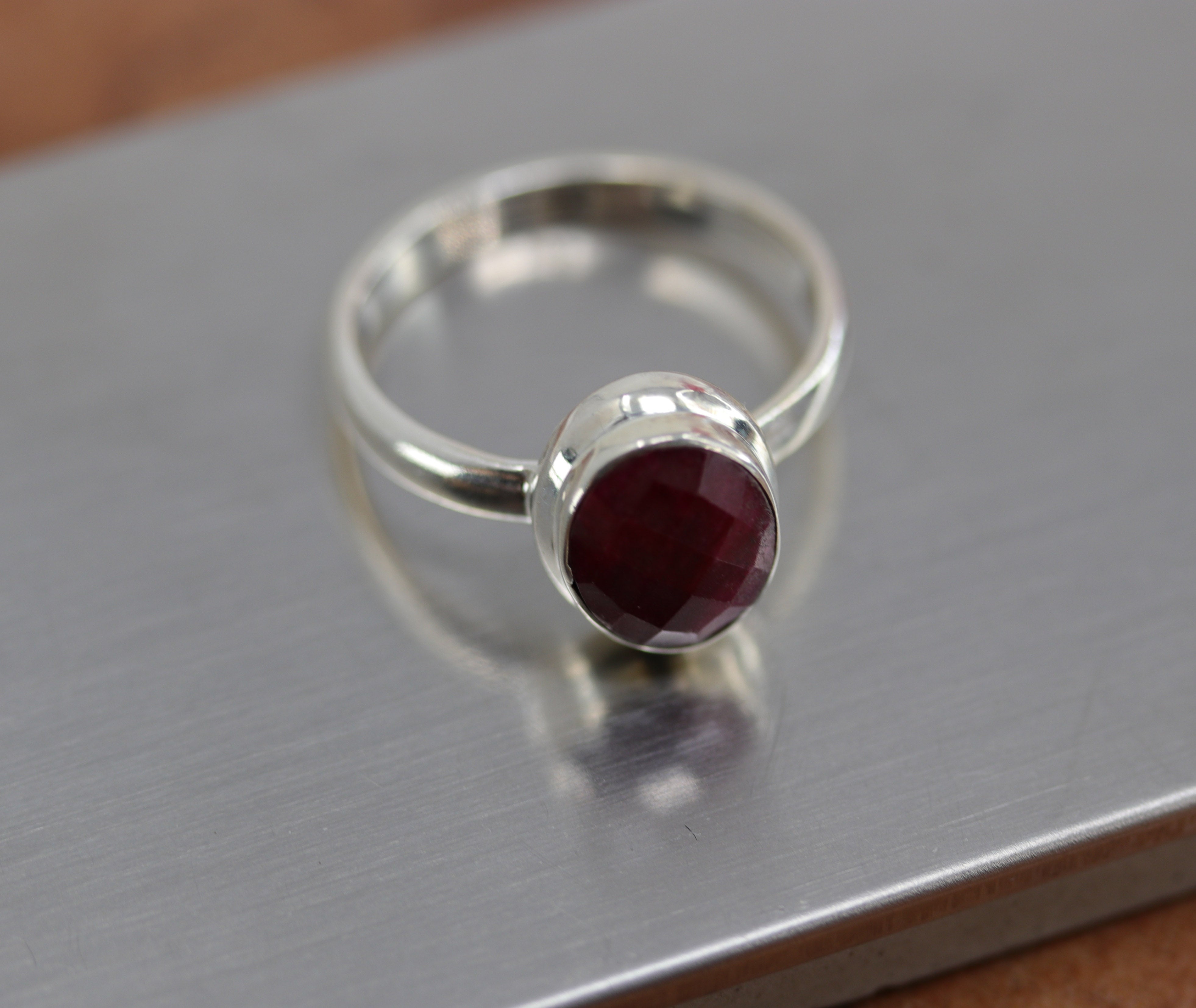 A beautiful Southwest Style gemstone ring made from sterling silver and ruby. The ring size is 8 and it is 3/8" in length. This item is not Native American.