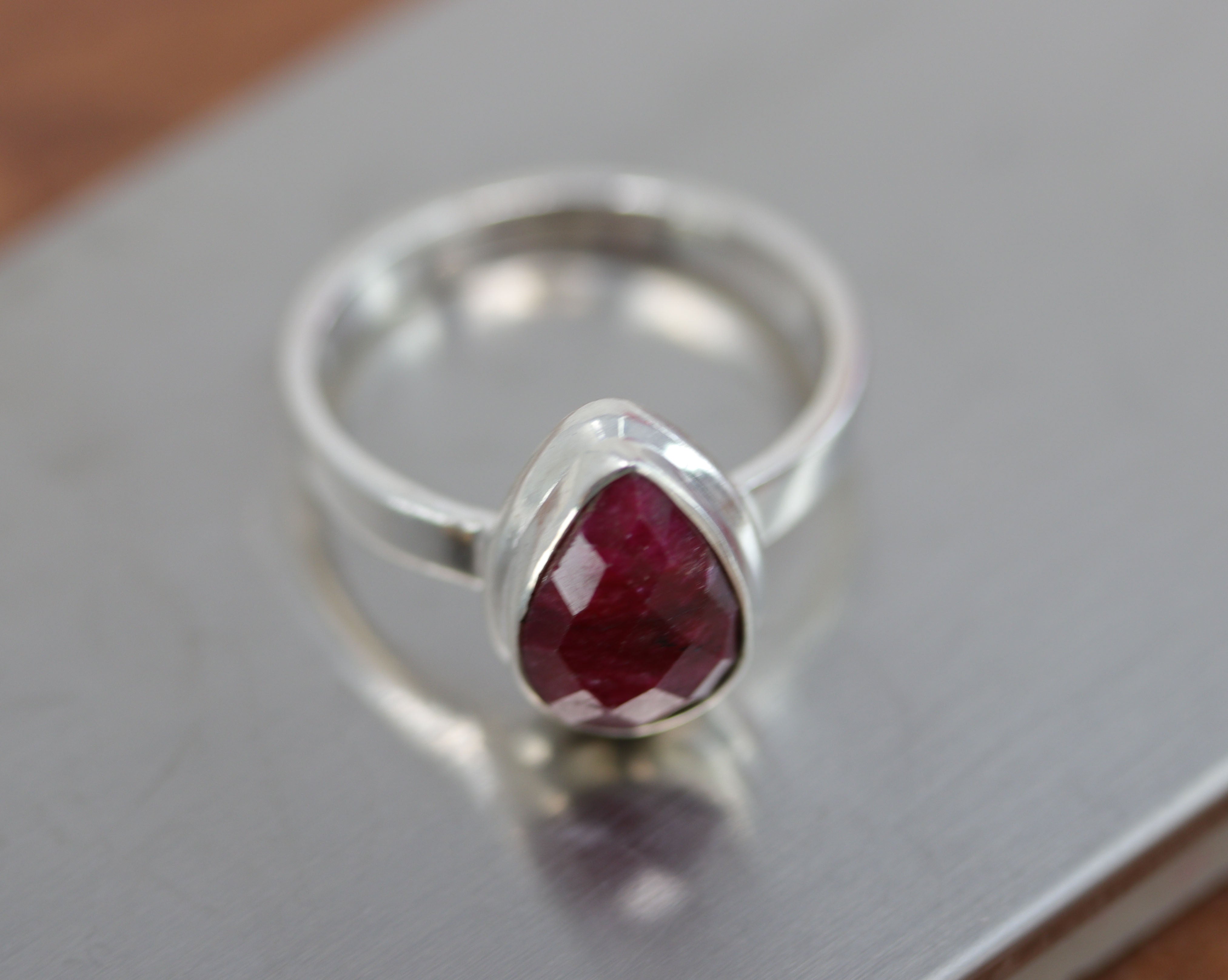 A beautiful Southwest Style gemstone ring made from sterling silver and ruby. The ring size is 7 and it is 1/2" in length. This item is not Native American.