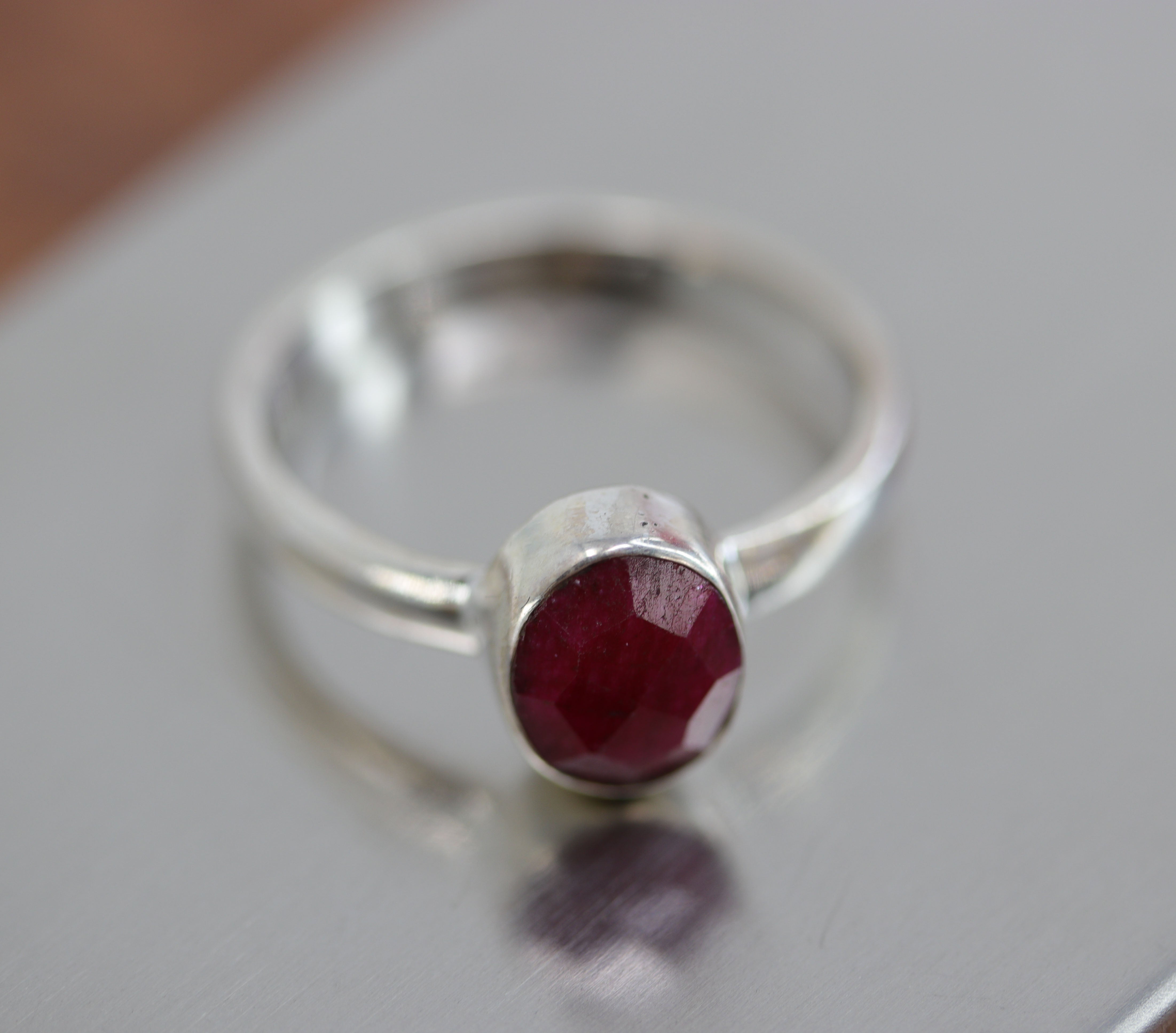 Sterling Silver Faceted Ruby Ring Size 8 1/2