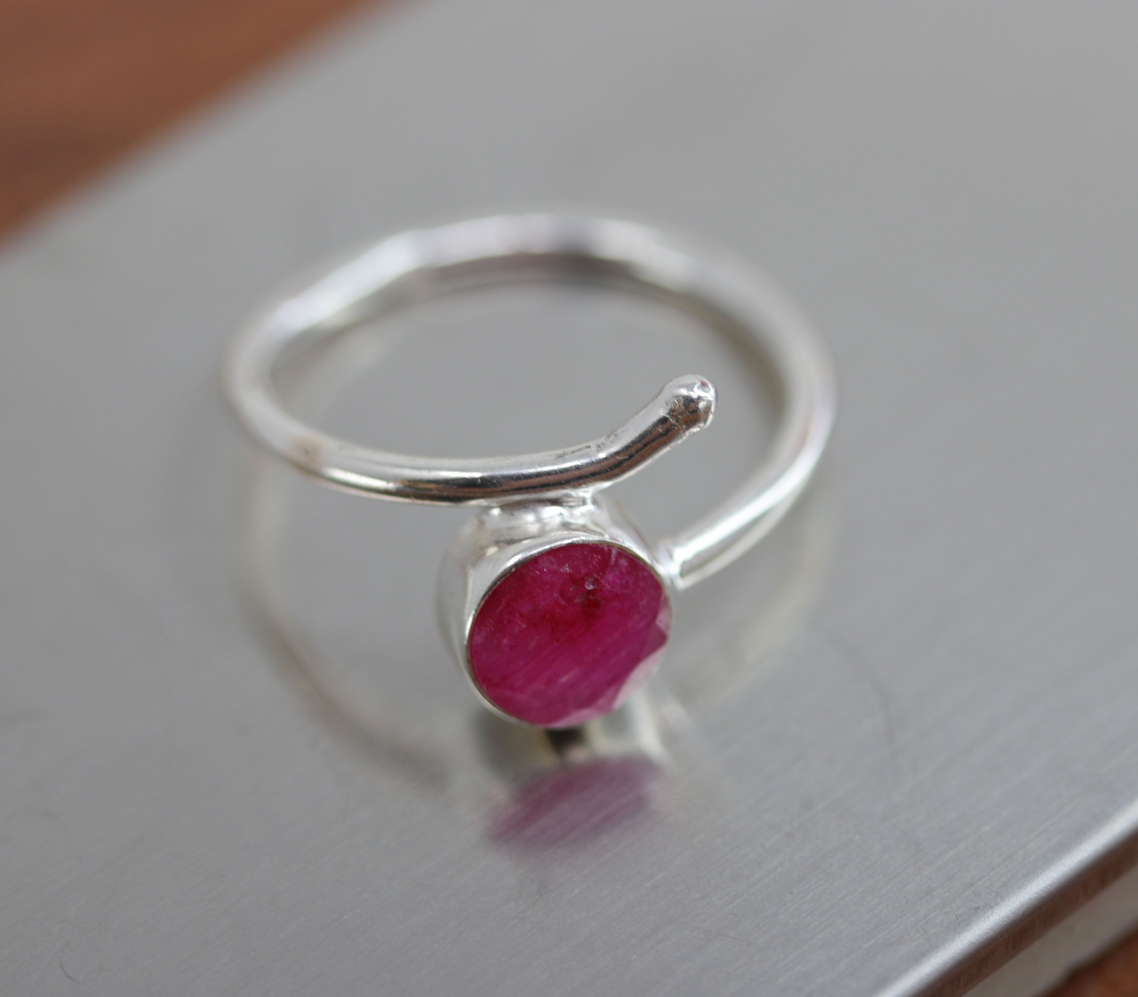 A beautiful Southwest Style gemstone ring made from sterling silver and ruby. The ring size is 8 and it is 5/8" in length. This item is not Native American.