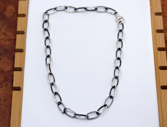 A Beautiful Paper Clip Chain Link Necklace. It is made from .925 sterling silver. The length is about 18" and the width is 1/4". This item is not Native American.