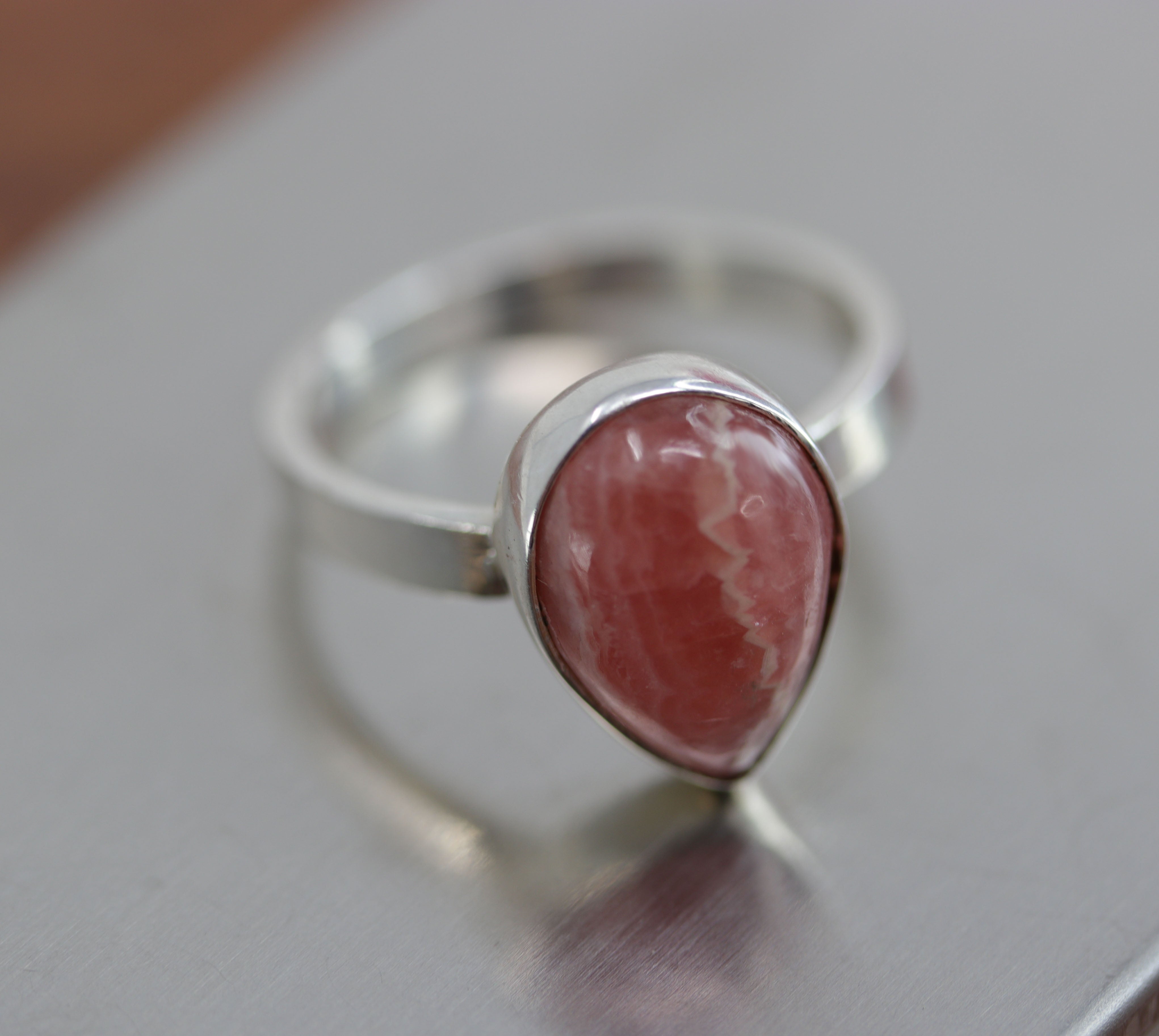 Sterling Silver Pink Rhodochrosite Ring Size 7 1/2