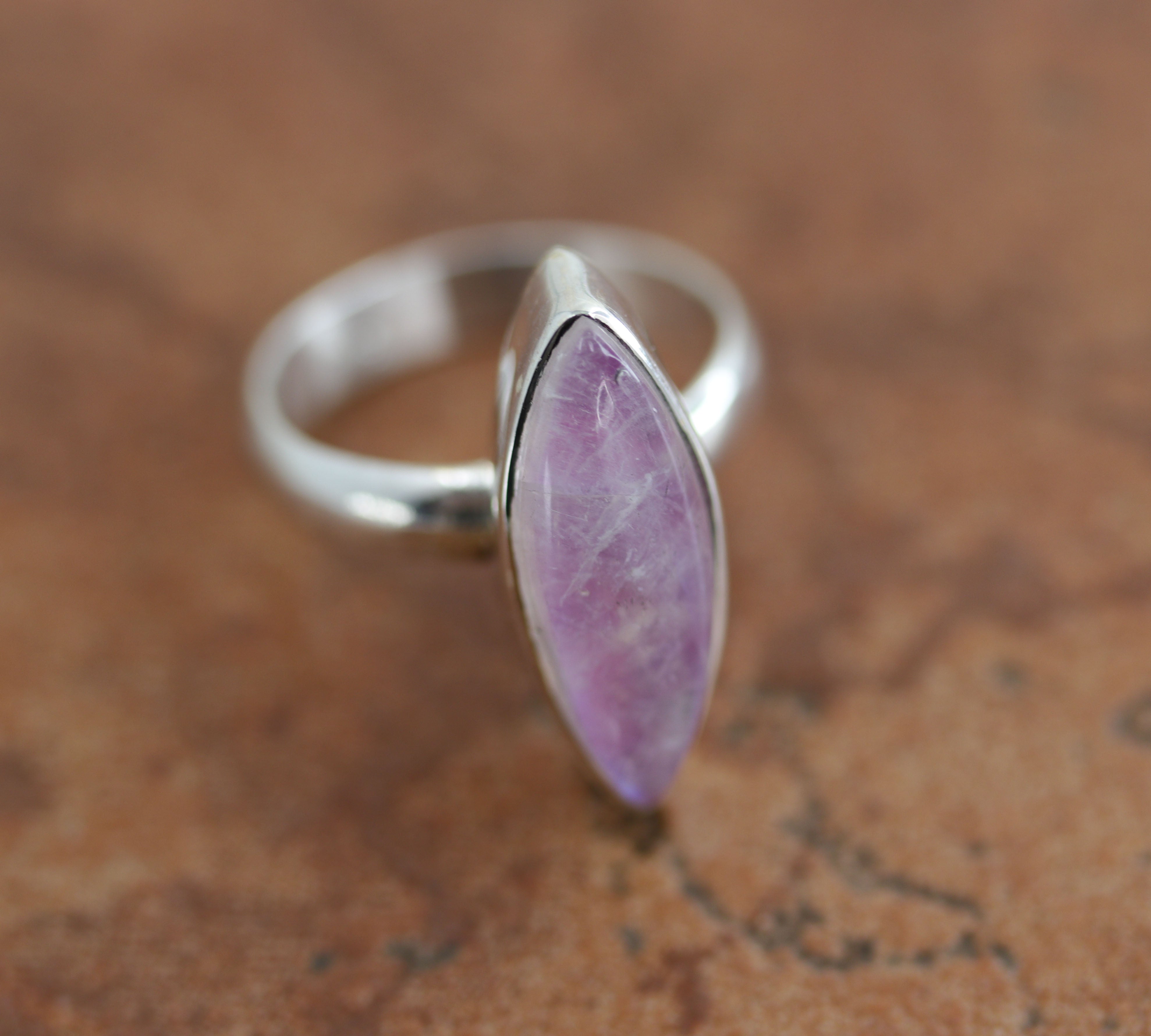 A beautiful Southwest Style gemstone ring made from sterling silver and rose quartz. The ring size is 7 and it is about 1" in length. This item is not Native American.