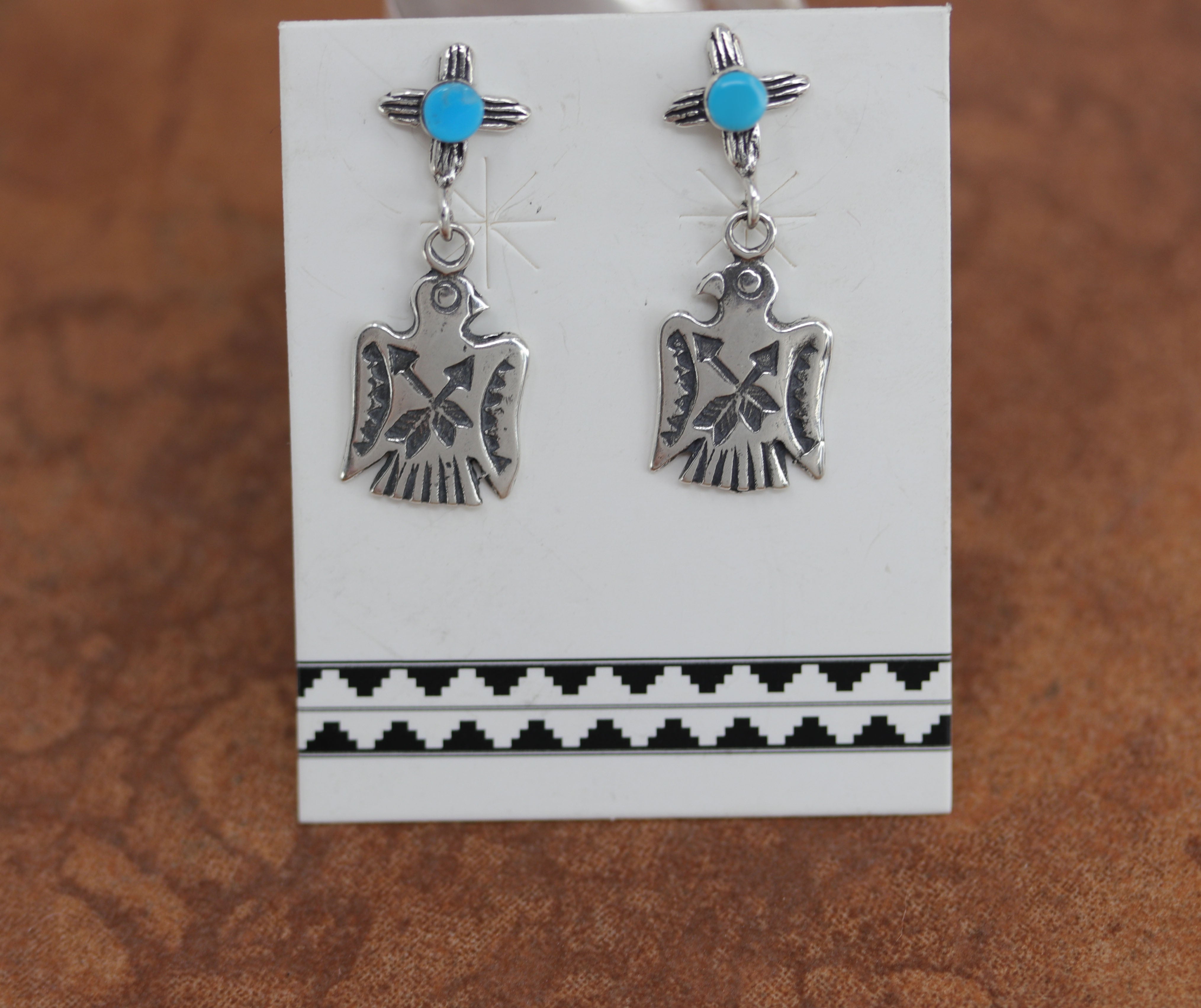 Sterling Silver Turquoise Eagle Zia Earrings