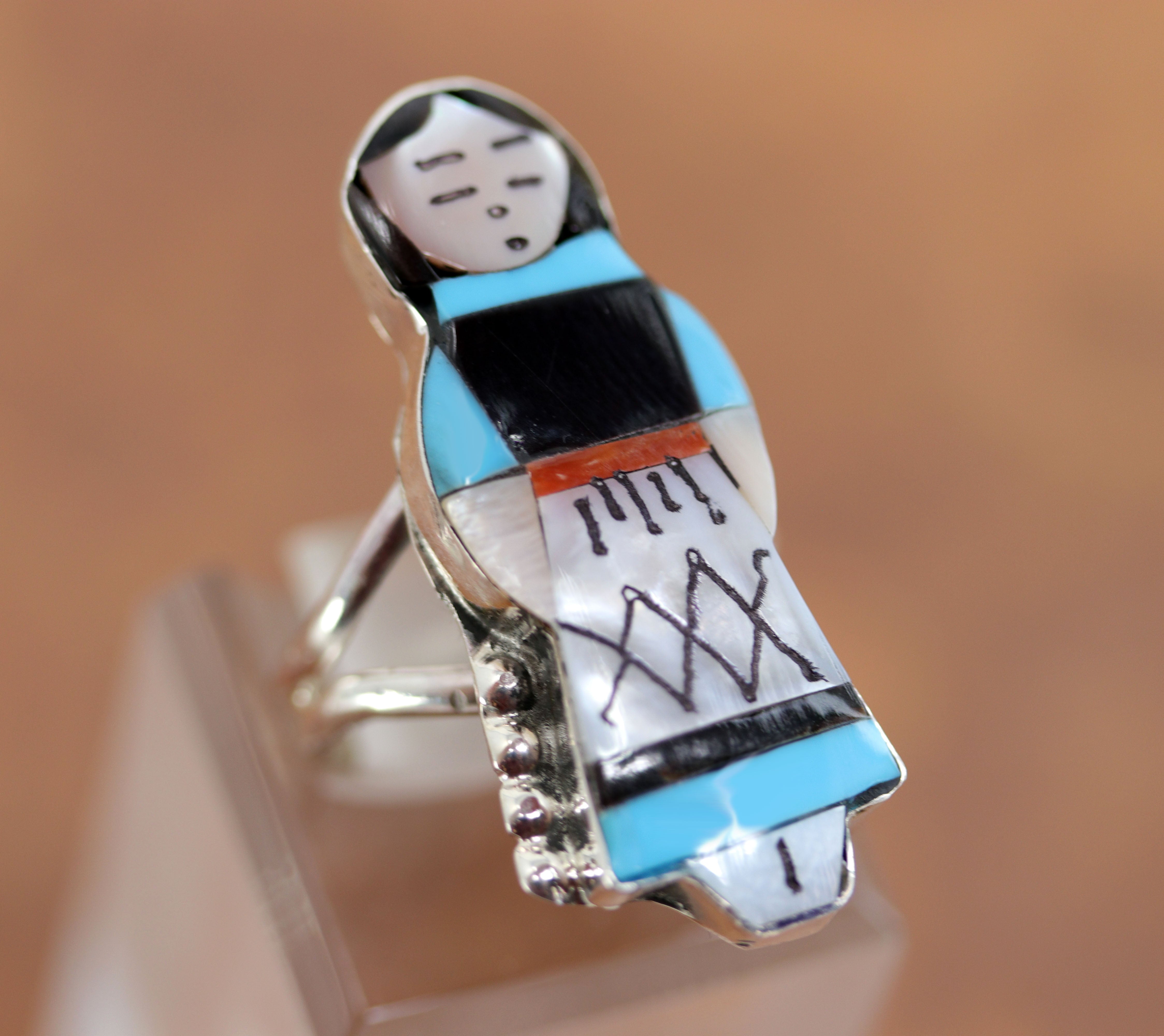 Zuni Maiden Silver Multi-Stone Ring Size 8