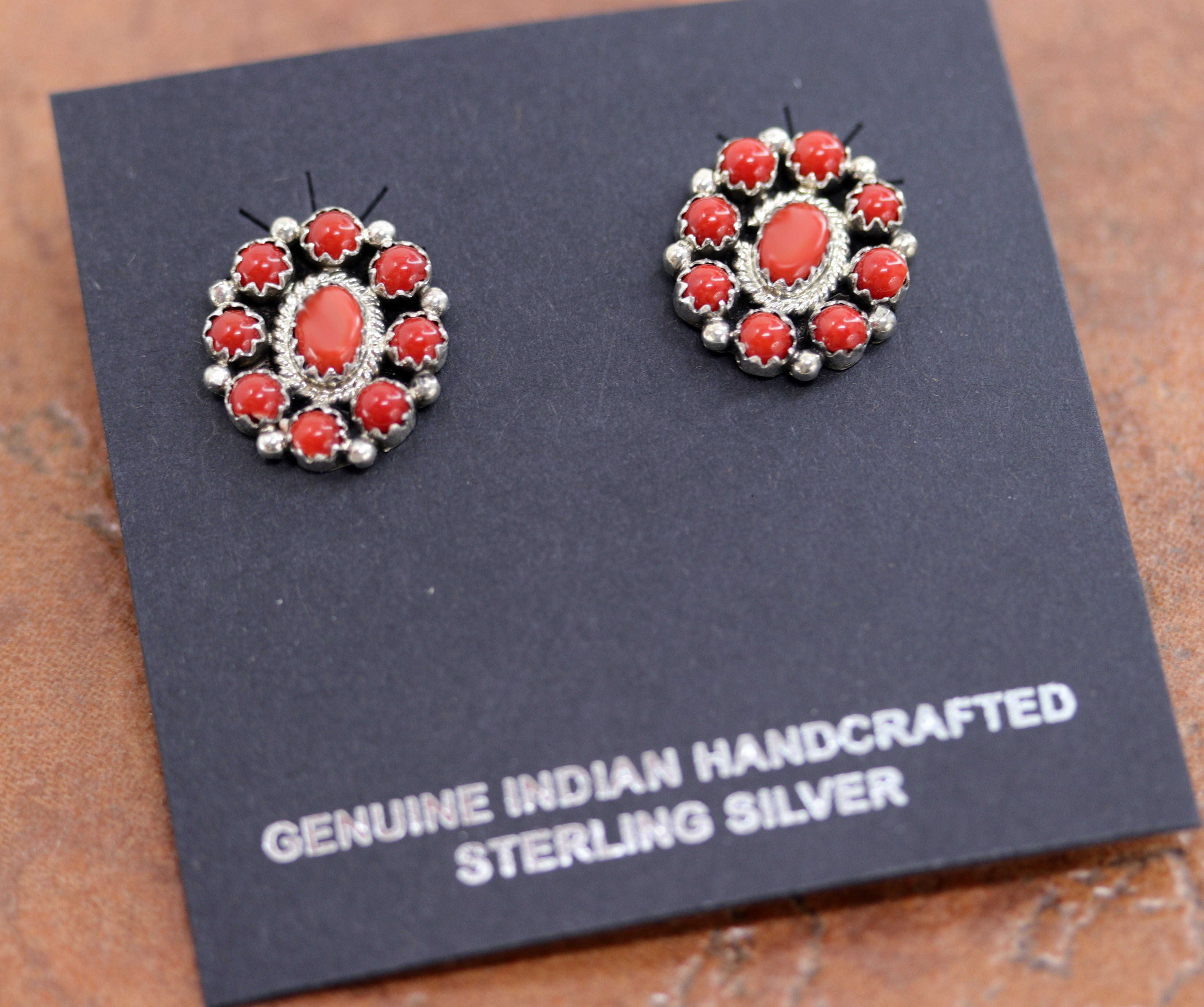 Zuni Native American earrings. They are made from sterling silver and coral. Each earring is 3/4" in length.
