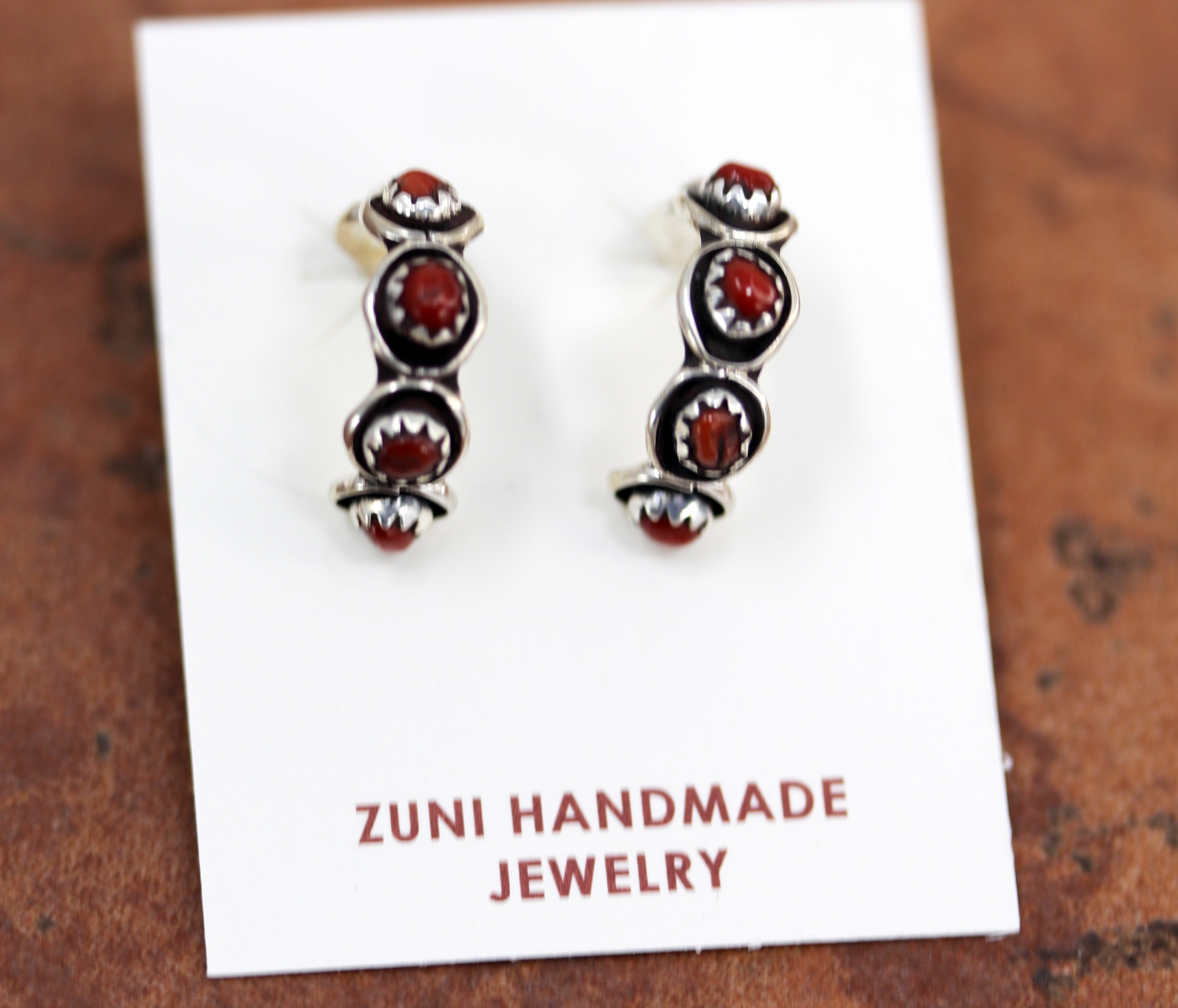 Zuni Silver Coral Hoop Earrings