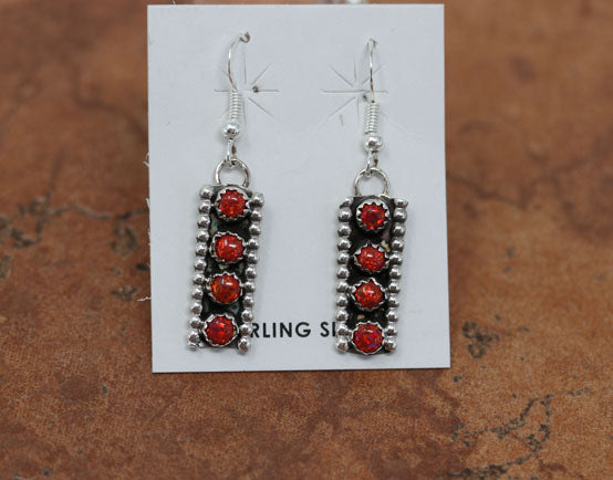 Gorgeous Zuni Native American earrings. They are made from sterling silver and created opal. Each earring is 1 7/8" in length including the hook, and about 3/8" in width.