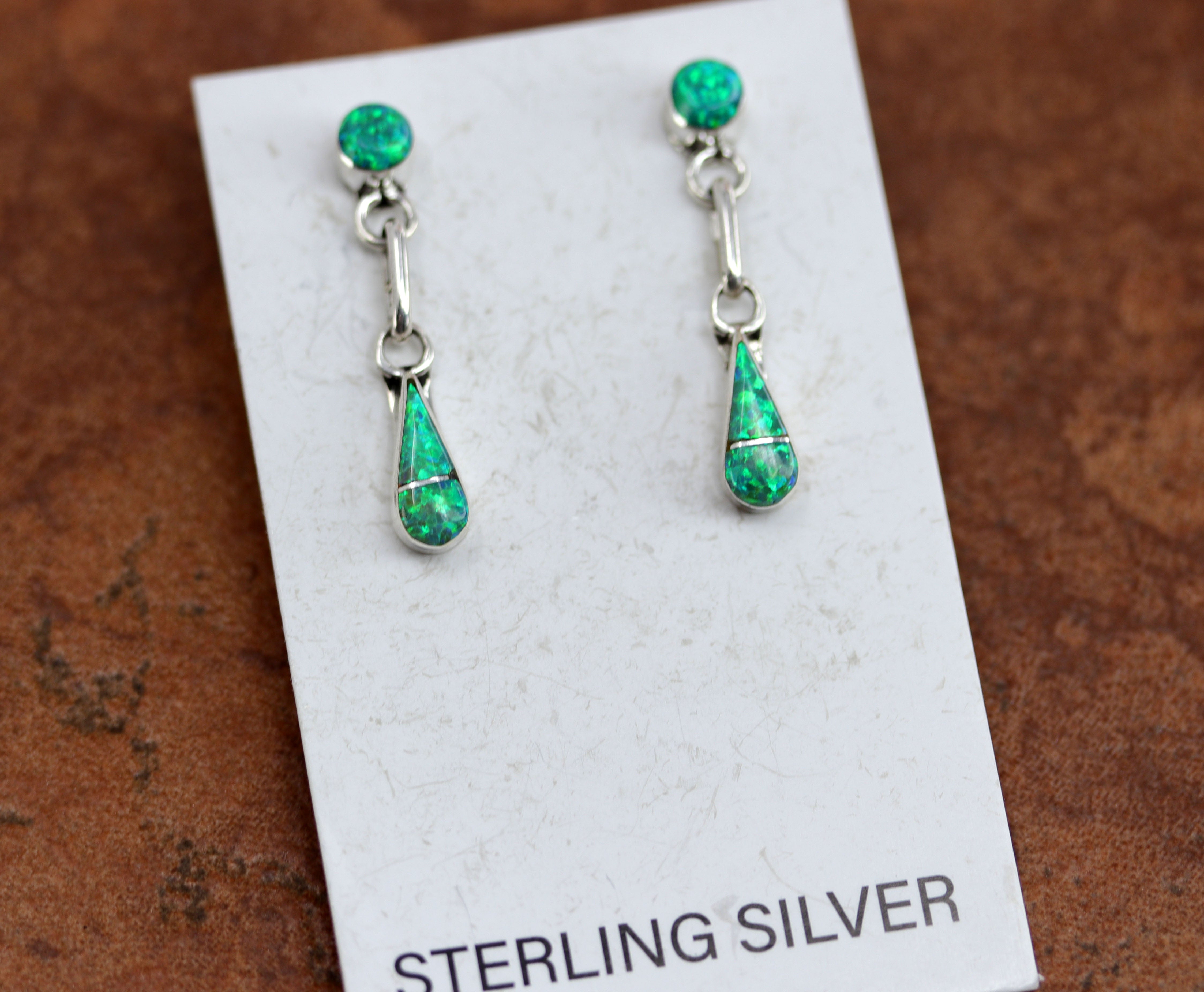 Zuni Silver Created Opal Tear Drop Earrings