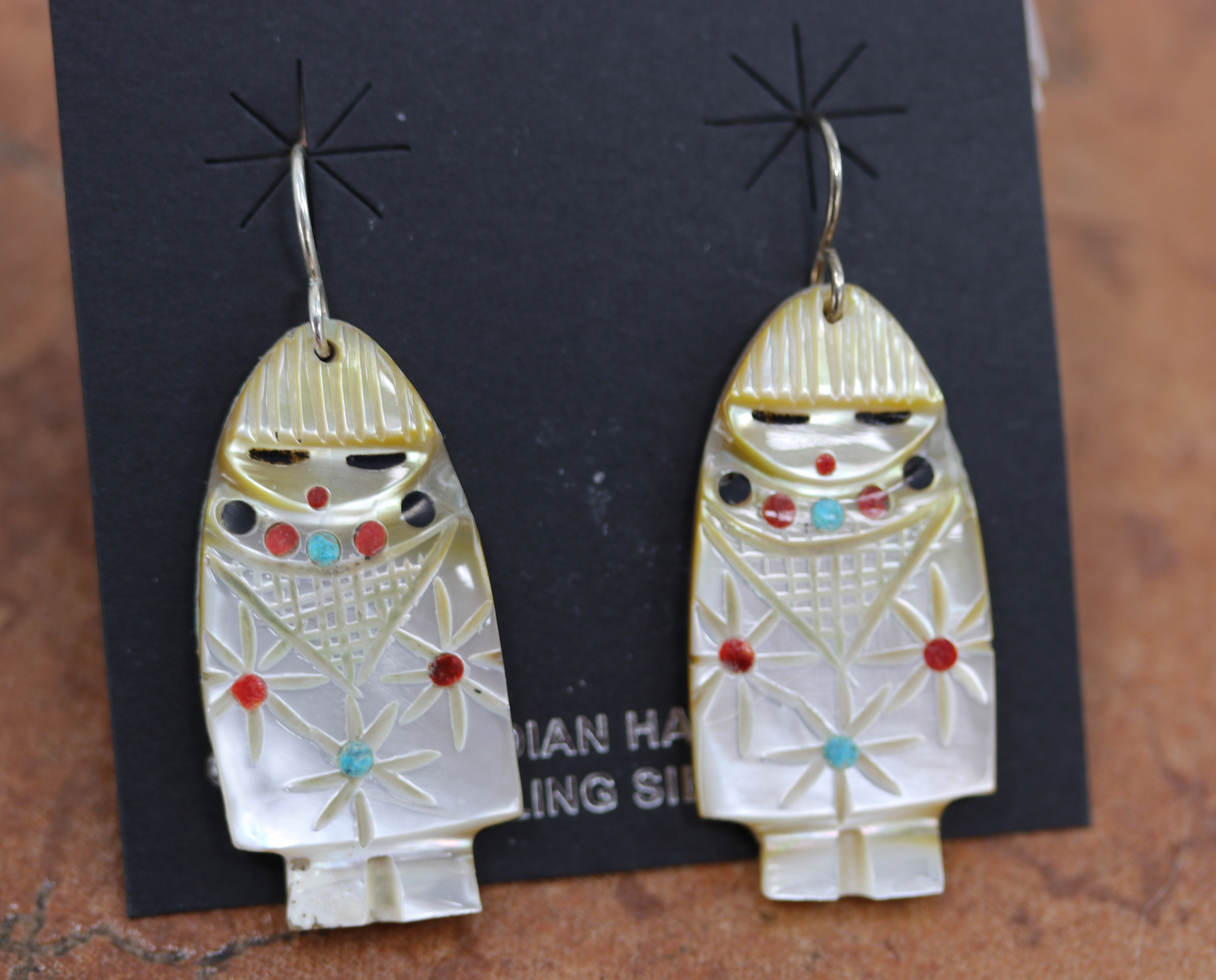 Zuni Silver Mother of Pearl Corn Maiden Earrings