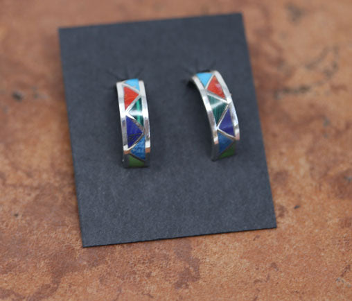 Zuni Silver Multi-Stone Hoop Earrings