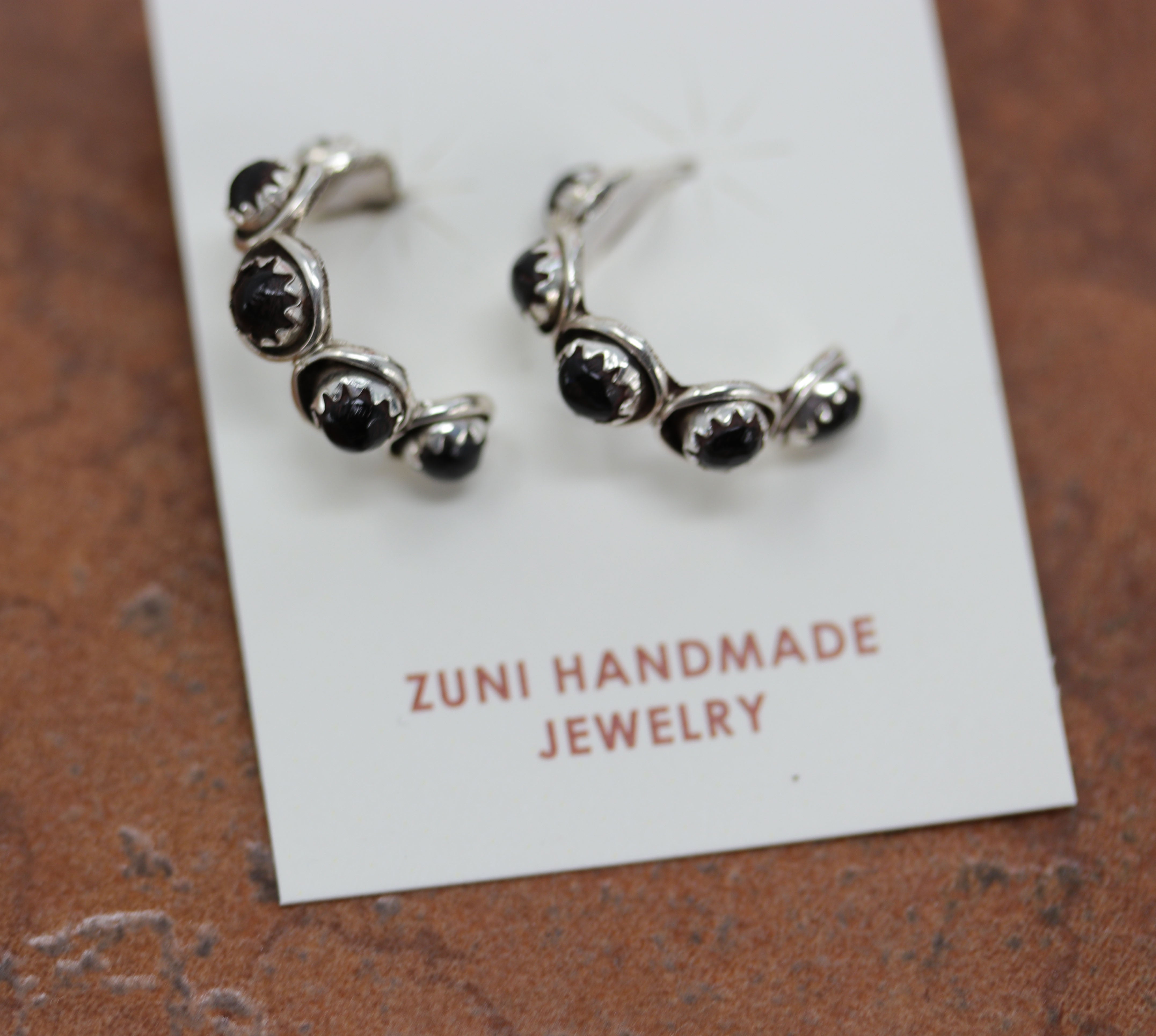 Zuni Silver Onyx Hoop Earrings