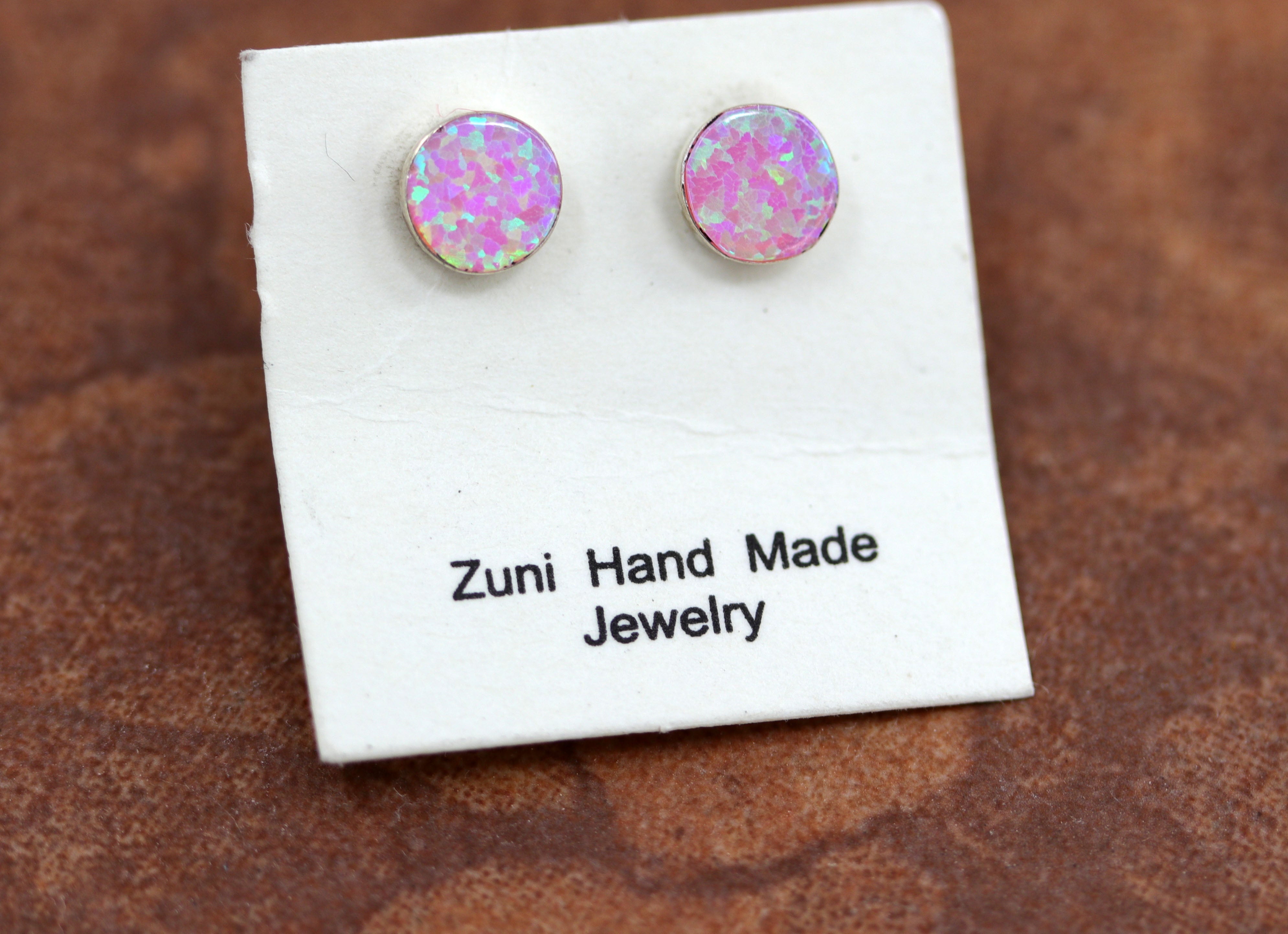 They are made from sterling silver and created opal. The earrings are about 3/16" in diameter. Each shipment comes with a free gift box!!