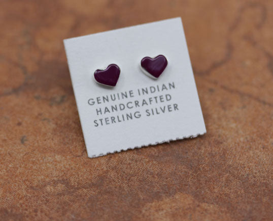 Beautiful Zuni Native American earrings. They are made from sterling silver and sugilite. Each earring is 1/4" in length, and about 1/4" in width.