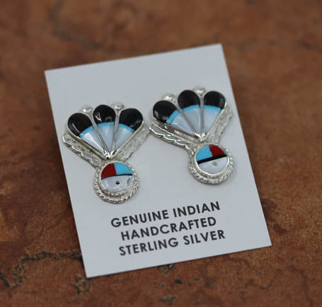 Brand new, very nice, Zuni Native American earrings. They are made from sterling silver and multi-stone inlay. The earrings are about 1" in length and 3/4" in width.