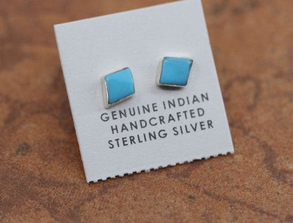 Beautiful Zuni Native American earrings. They are made from sterling silver and turquoise. Each earring is 3/8" in length and about 1/4" in width.