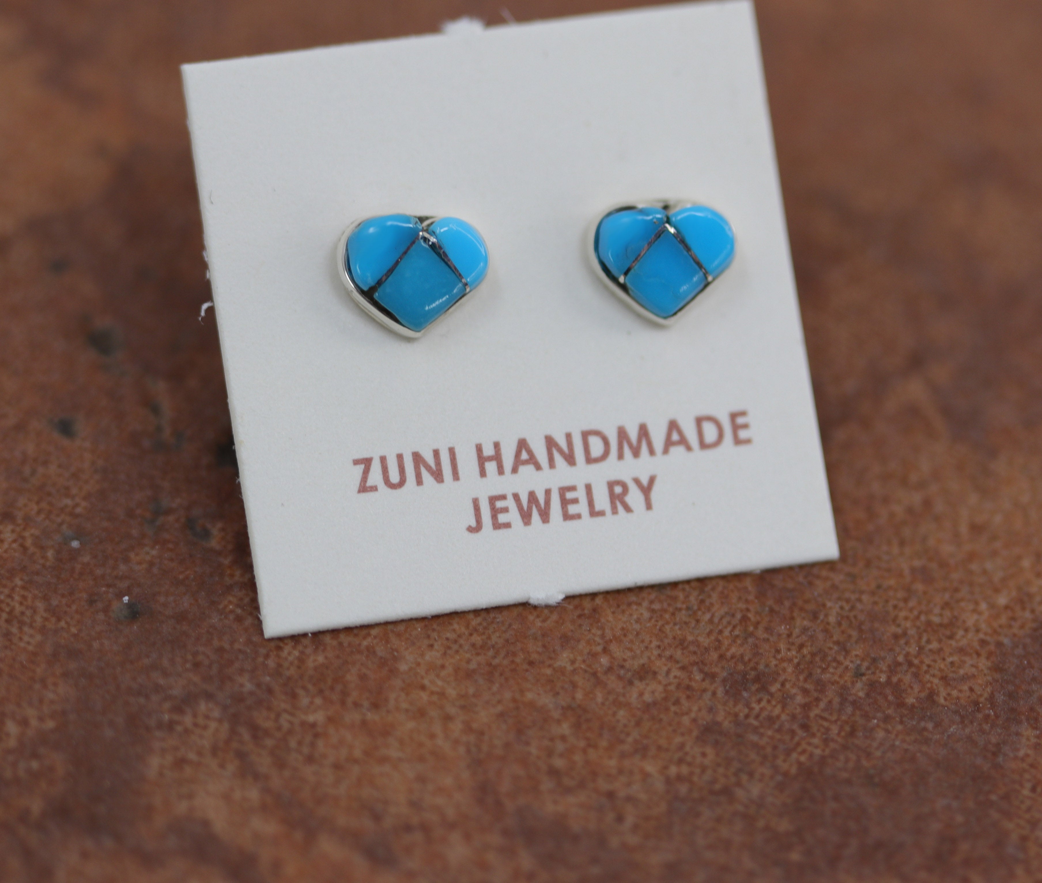 Beautiful Zuni Native American earrings. They are made from sterling silver and turquoise. Each earring is 1/4" in length, and about 1/4" in width.