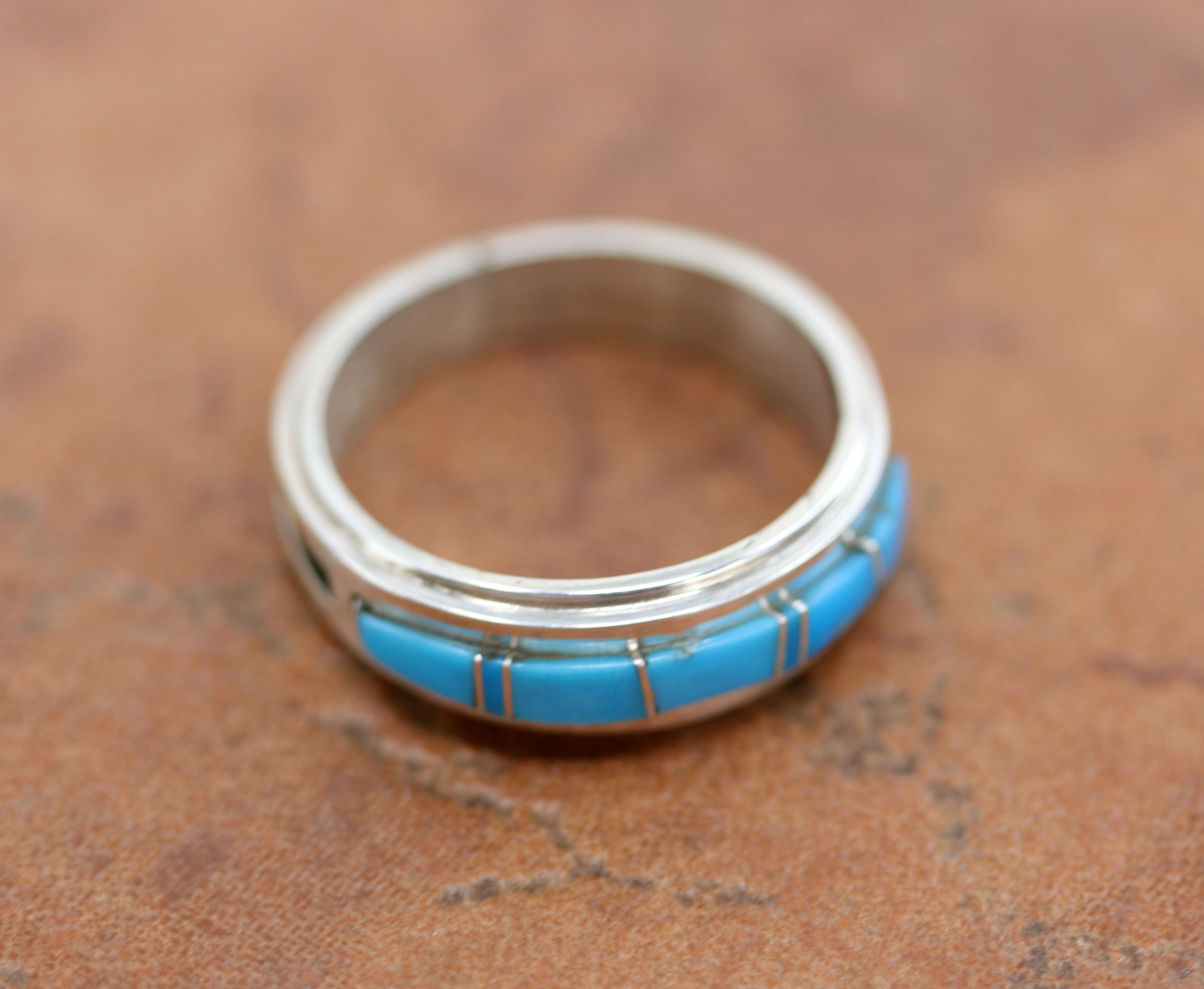 Beautiful Zuni Native American ring. It is made from sterling silver and turquoise. The ring size 8 and it is 5/16" in length.