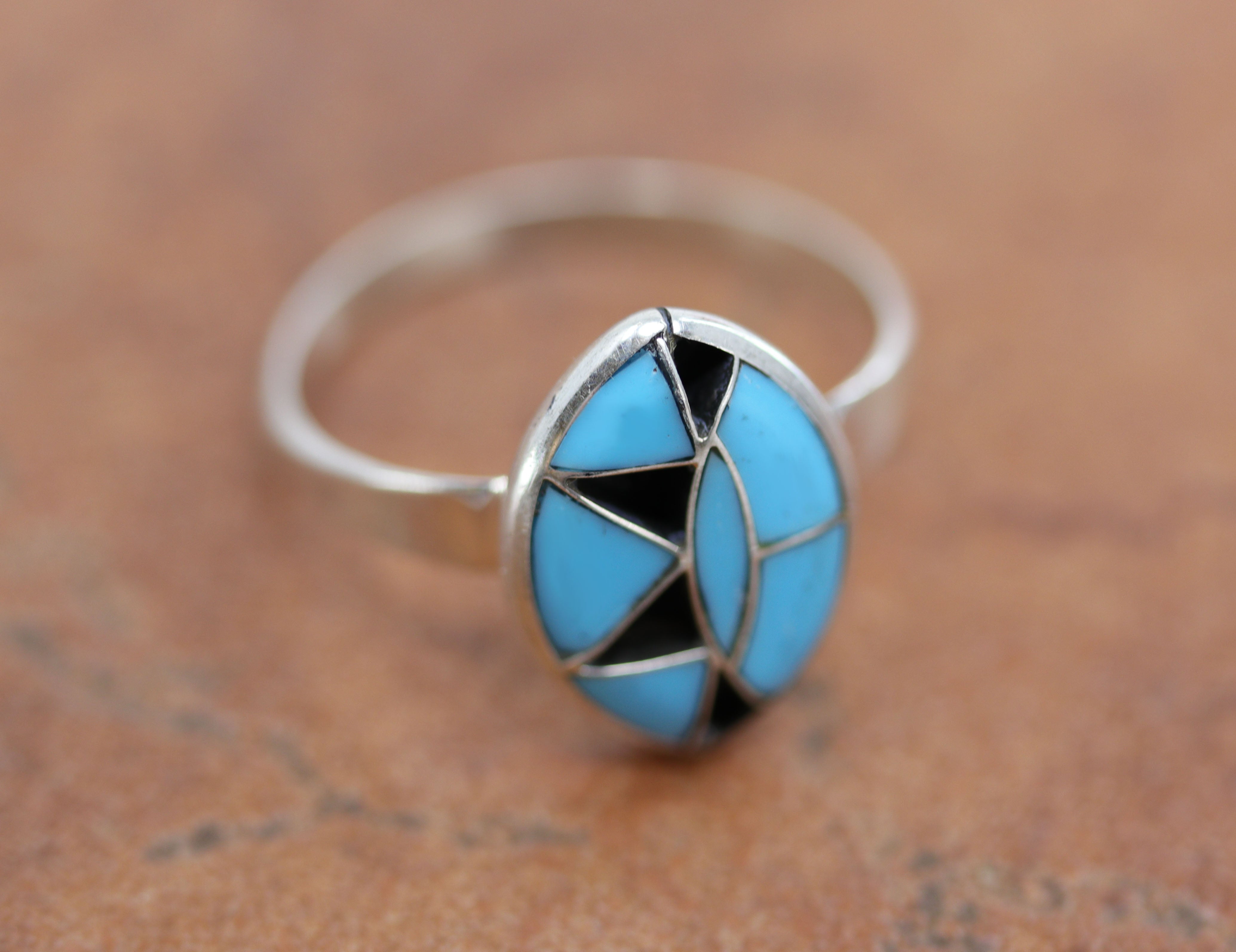 Beautiful Zuni Native American ring. It is made from sterling silver and turquoise. The ring size 6 1/2 and it is 5/8" in length.
