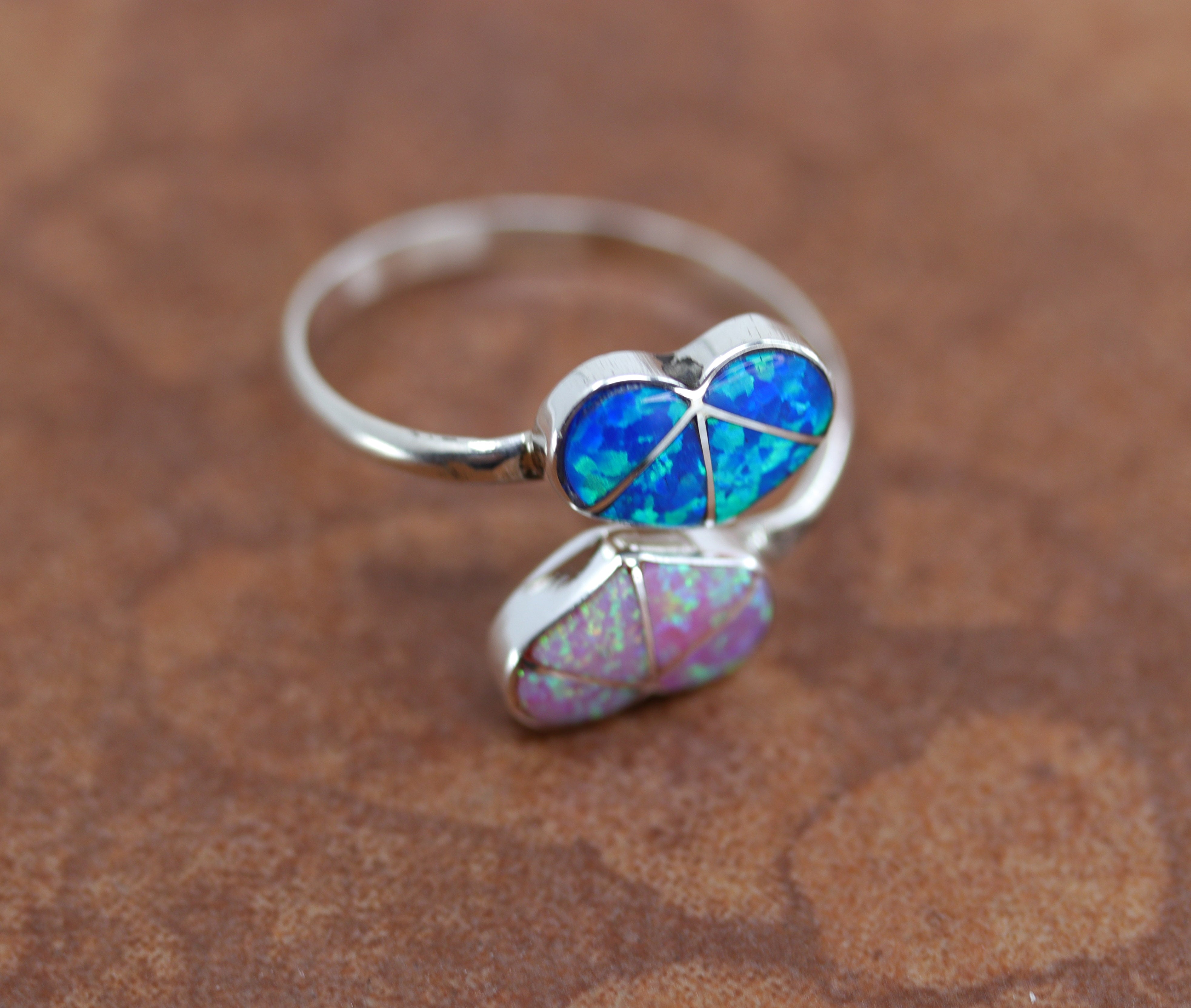 Zuni Sterling Created Opal Heart Spoon Ring Size 8-10
