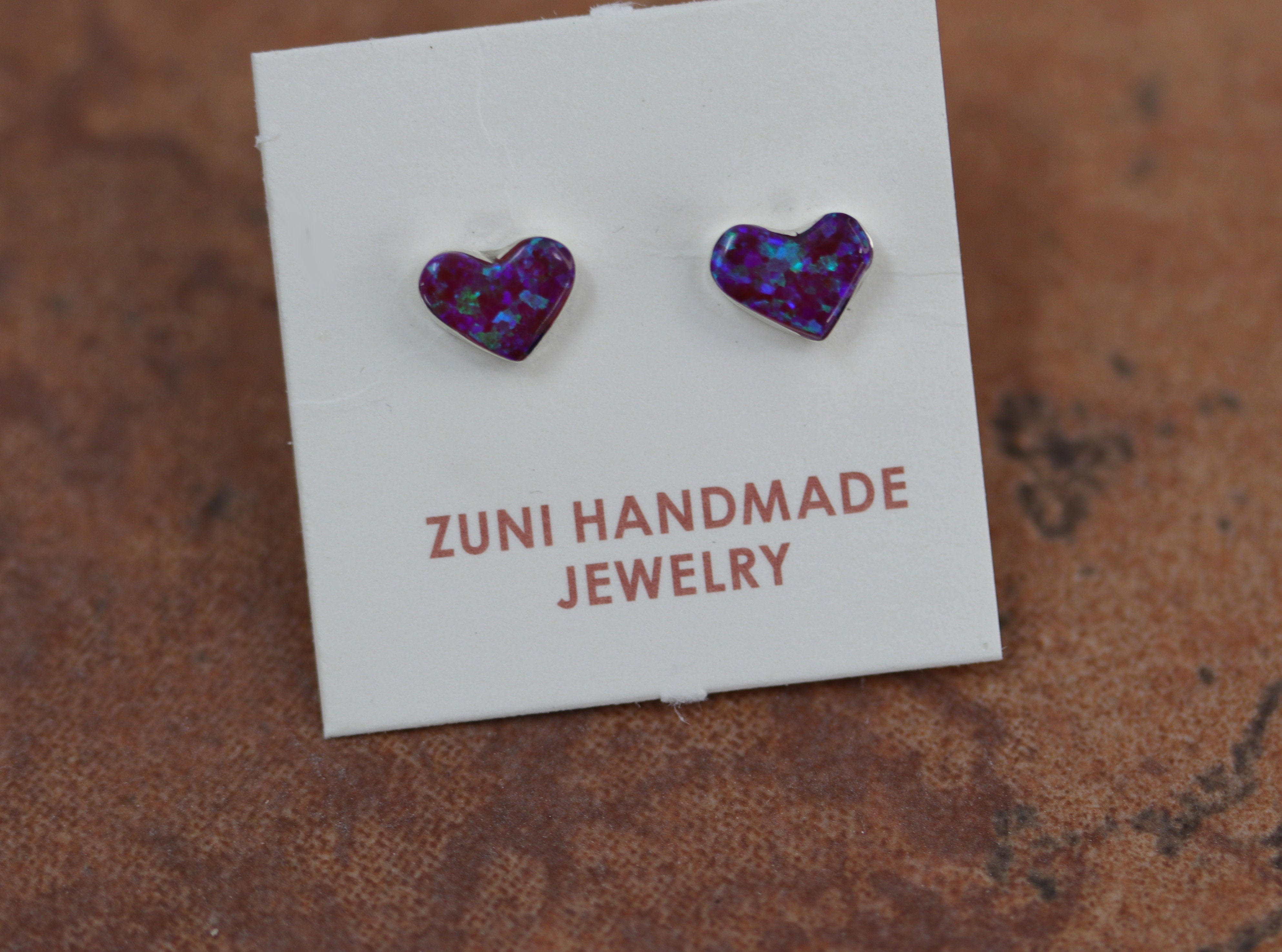 Beautiful Zuni Native American earrings. They are made from sterling silver and created opal. Each earring is 1/4" in length, and about 1/4" in width.