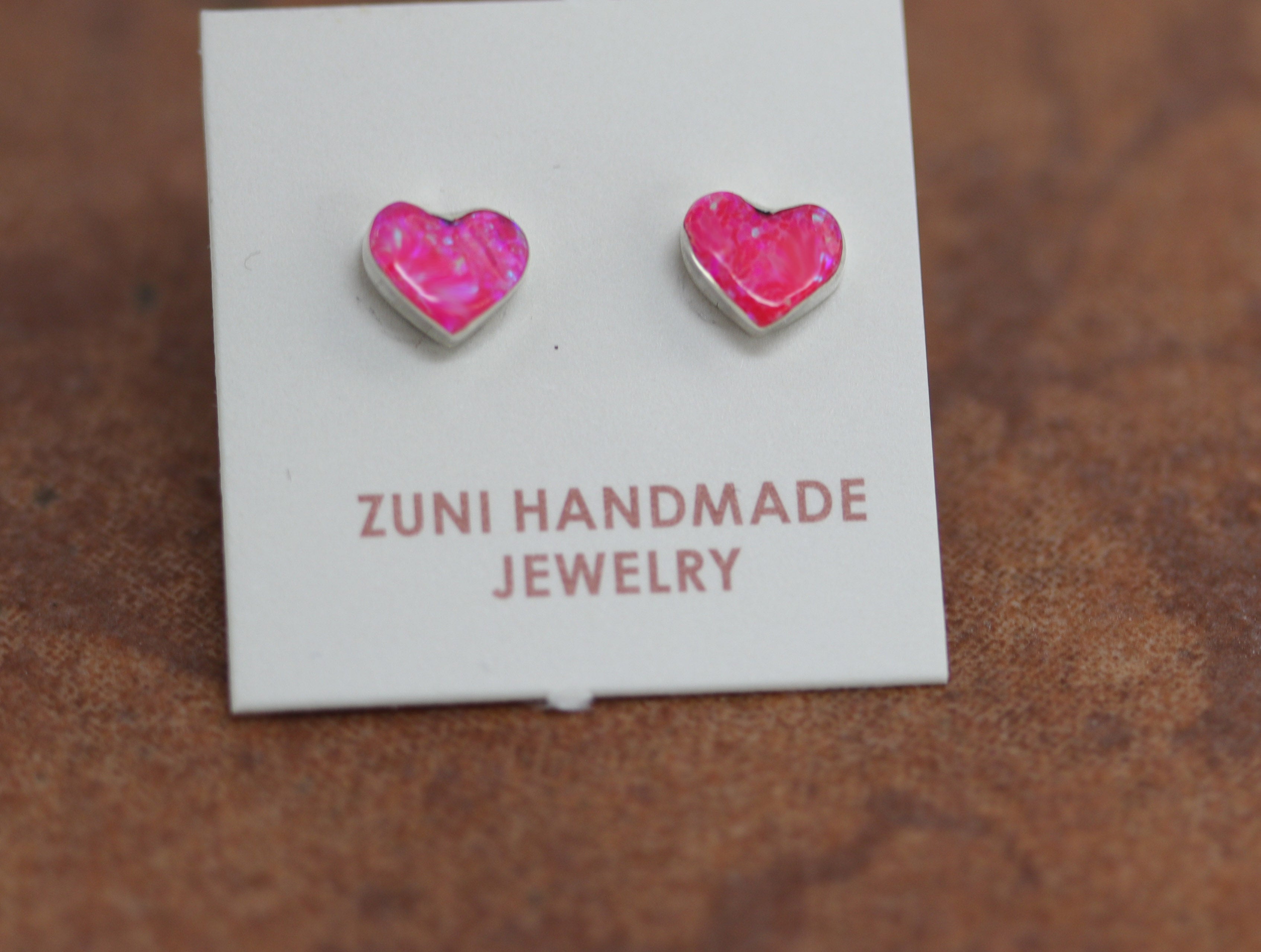 Beautiful Zuni Native American earrings. They are made from sterling silver and created opal. Each earring is 1/4" in length, and about 1/4" in width.