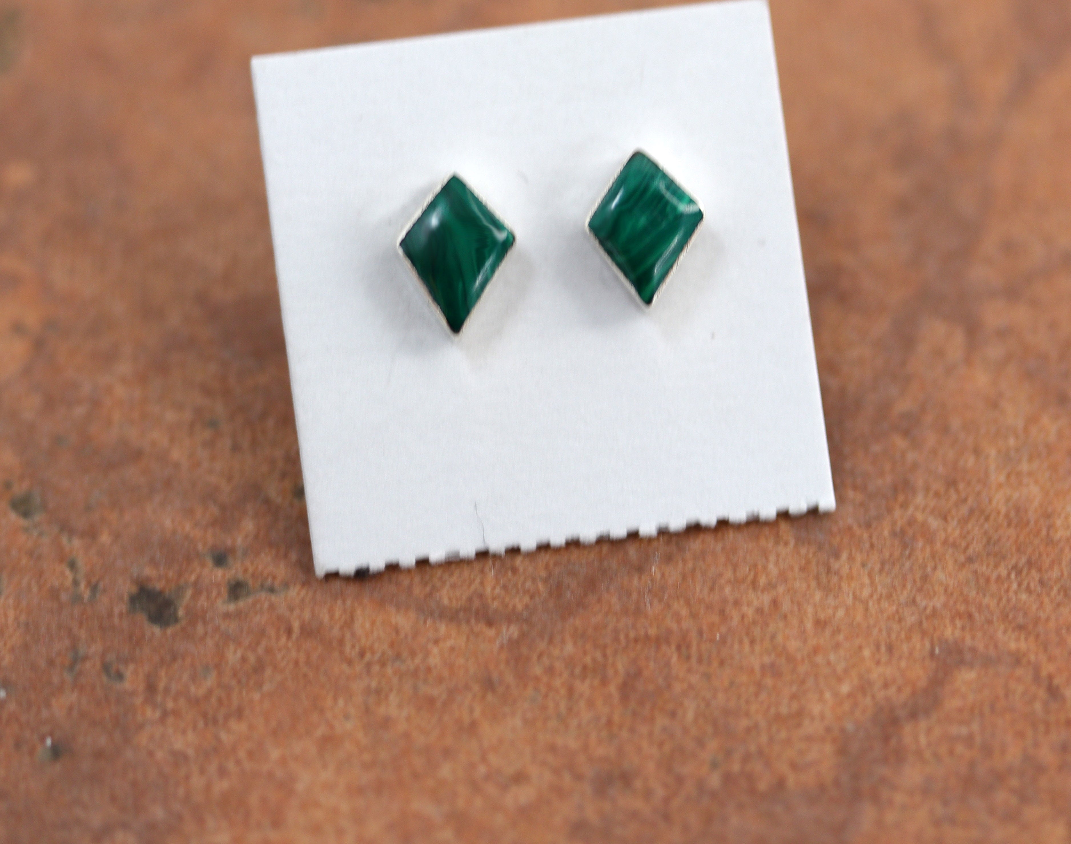 Brand new, very nice sterling silver earrings. They are made from sterling silver and malachite. The earrings are about 3/8" in length.