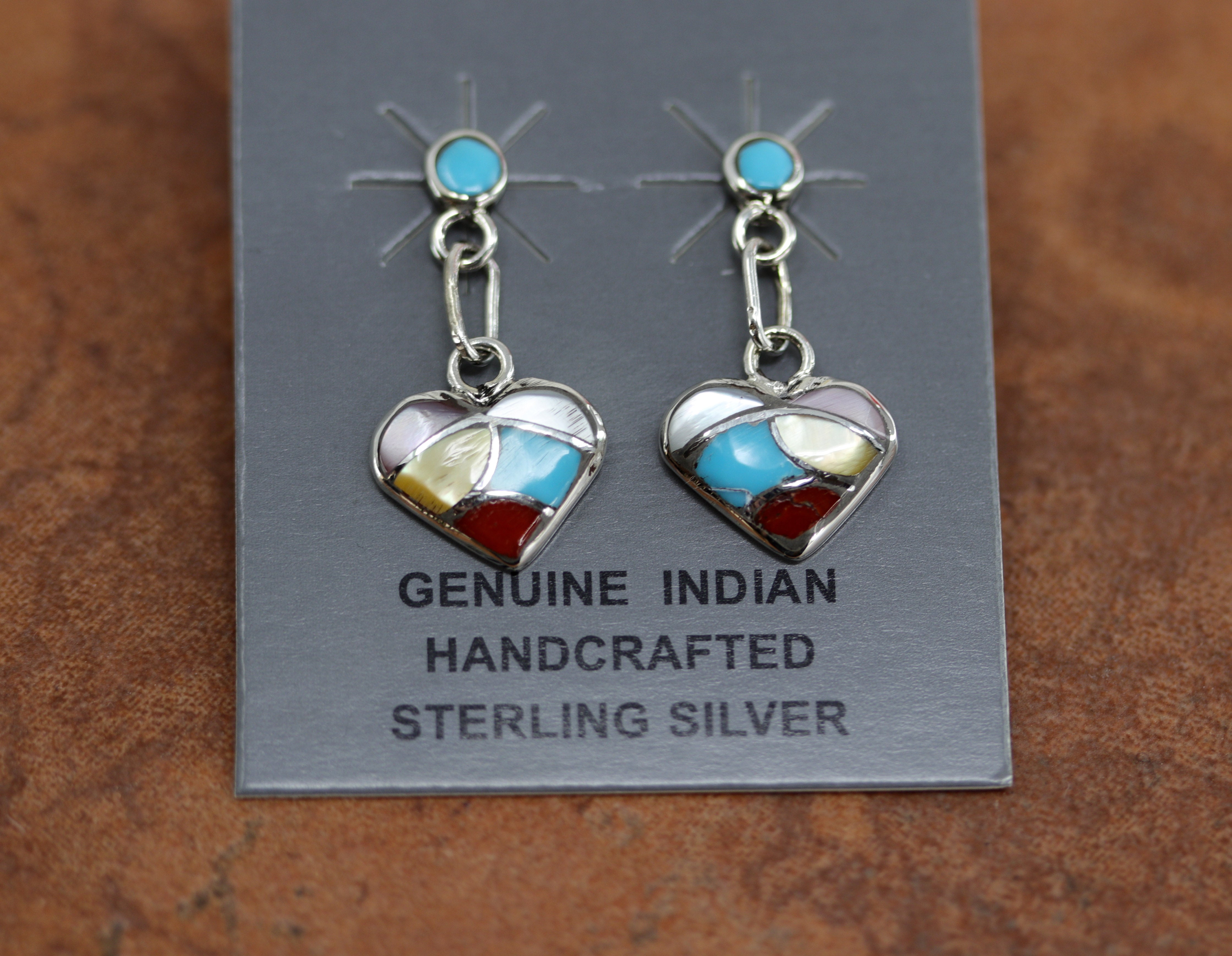 Zuni Sterling Silver Multi-Stone Heart Earrings