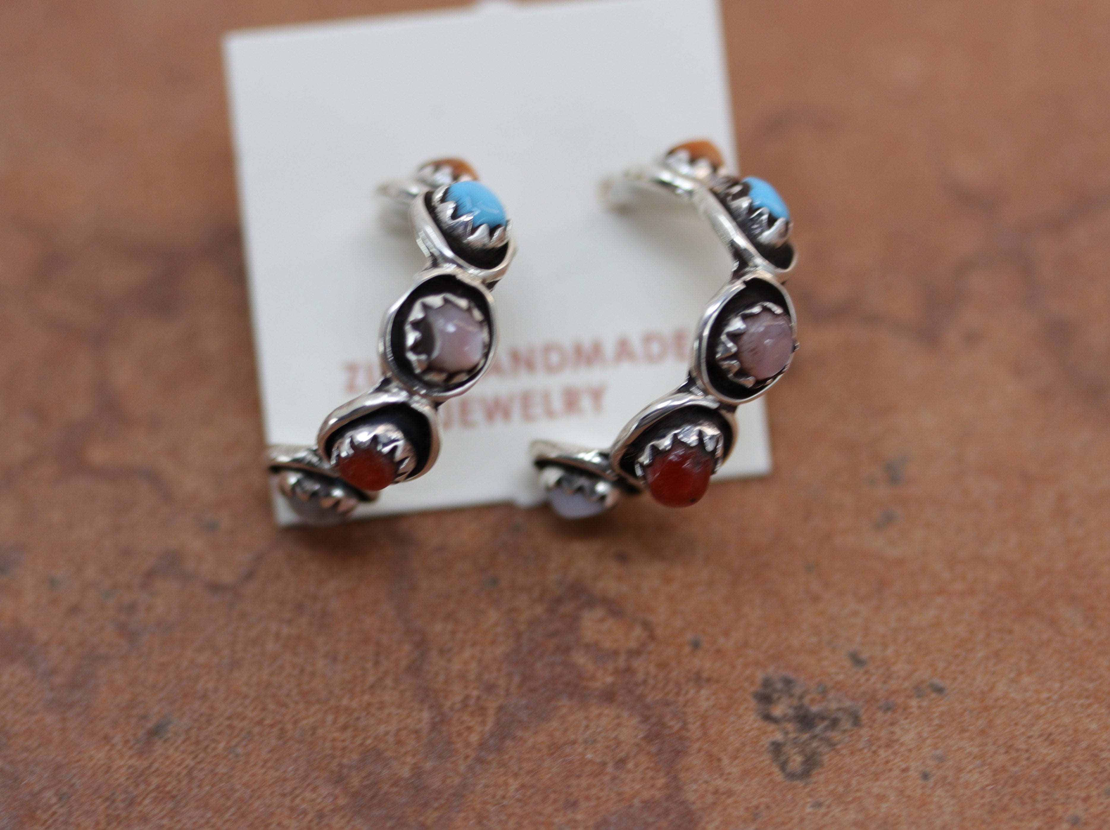 Zuni Sterling Silver Multi-Stone Hoop Earrings