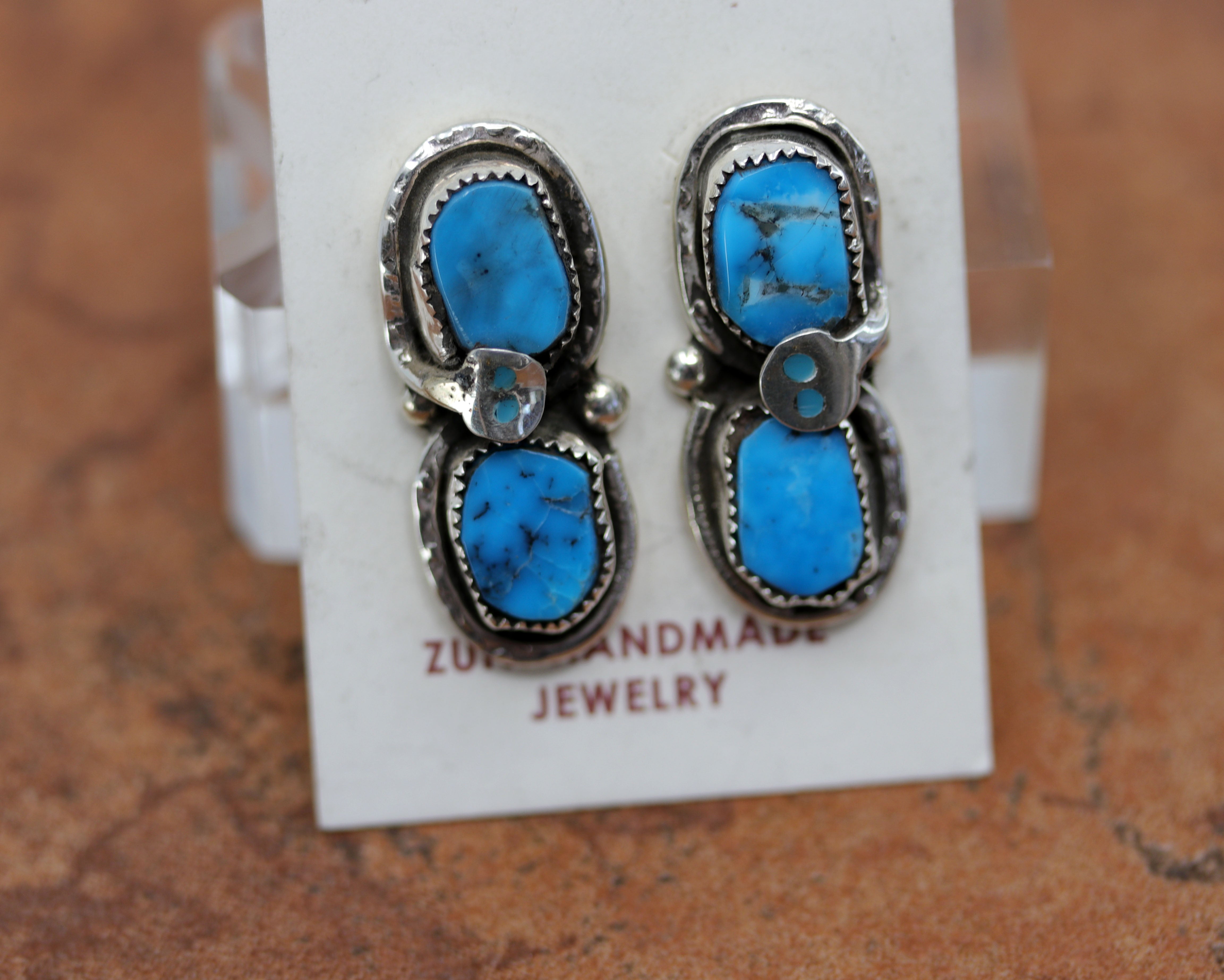 Zuni Sterling Silver Turquoise Earrings by Calavaza
