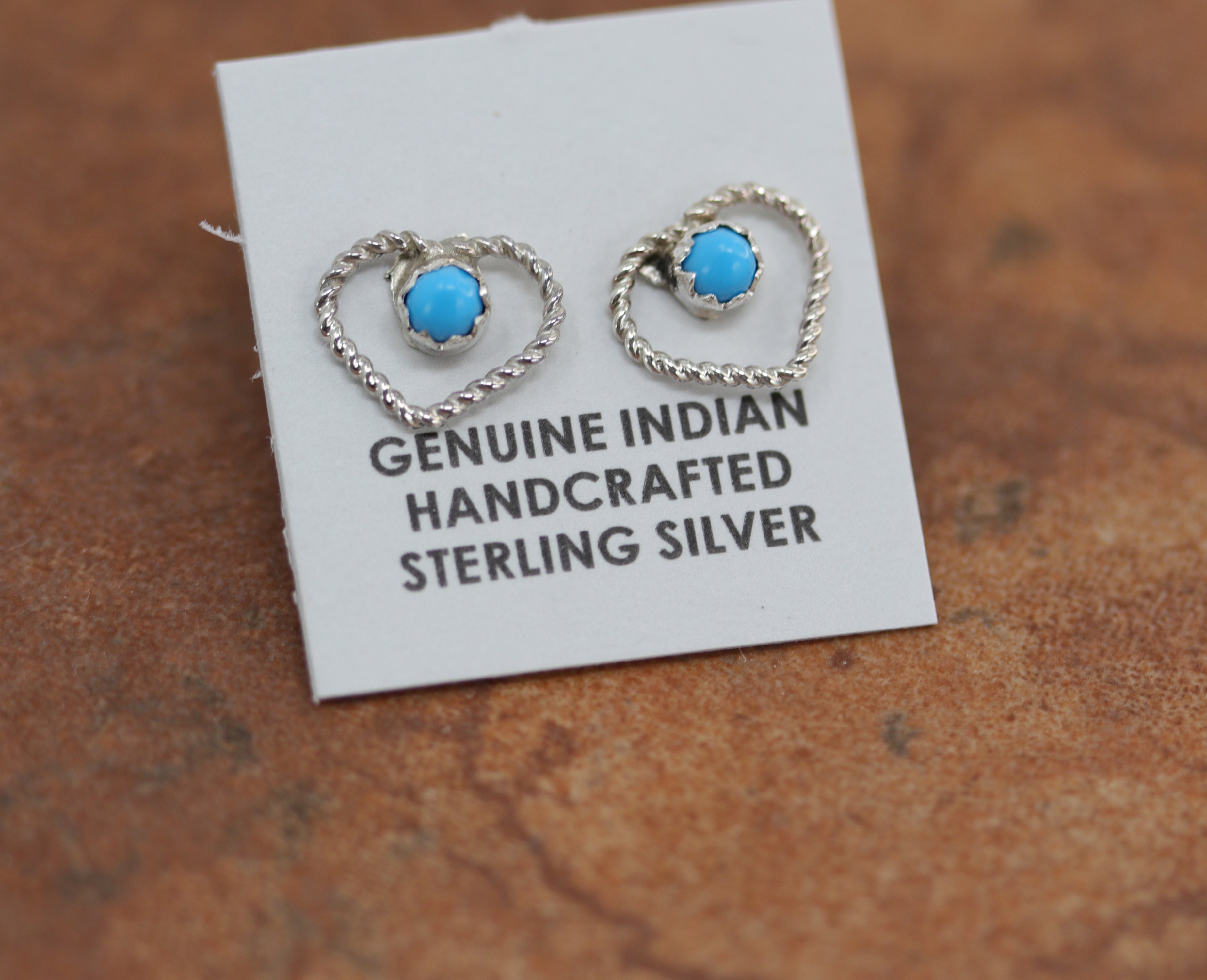 Beautiful Zuni Native American twist wire earrings. They are made from sterling silver and turquoise. Each earring is 3/8" in length, and about 3/8" in width.